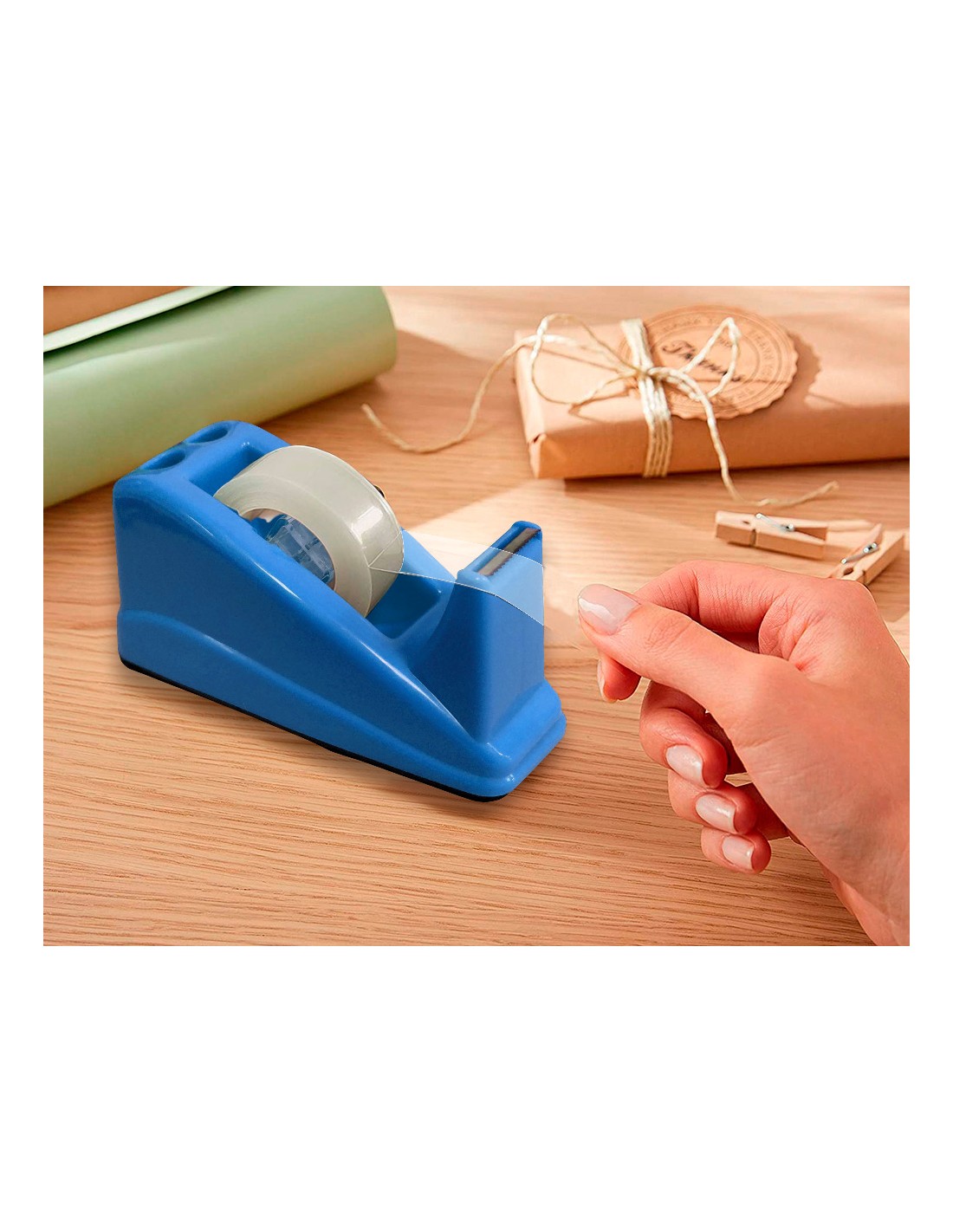 Portarrollo sobremesa q-connect plastico para cinta de 33 mt color azul 135x58x60 mm