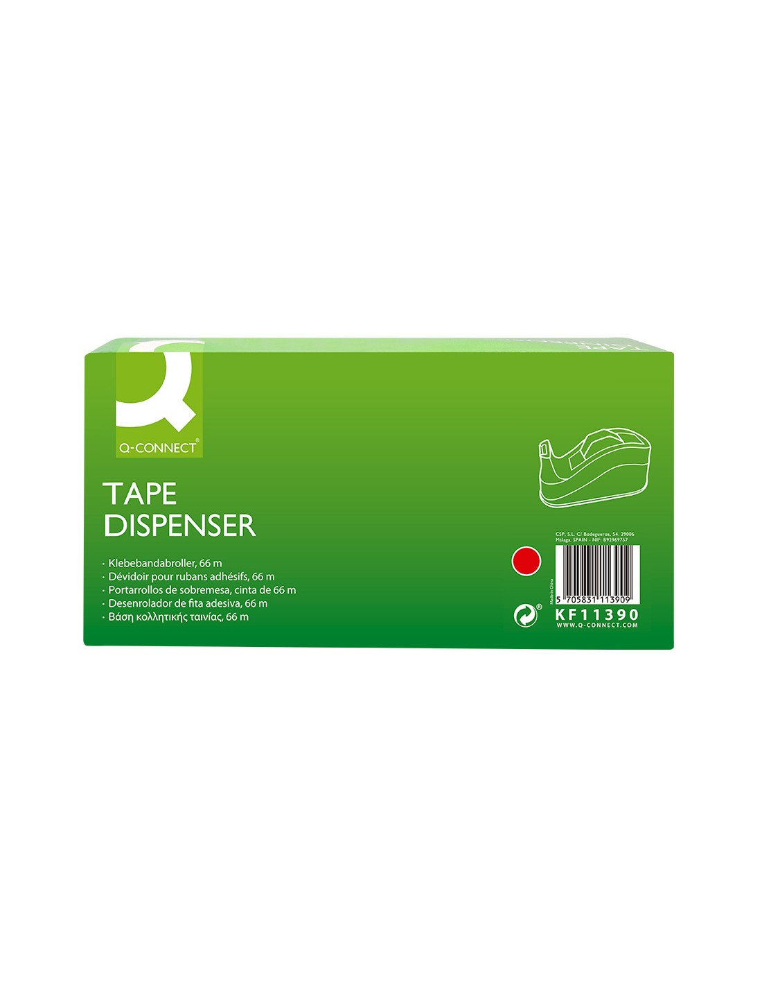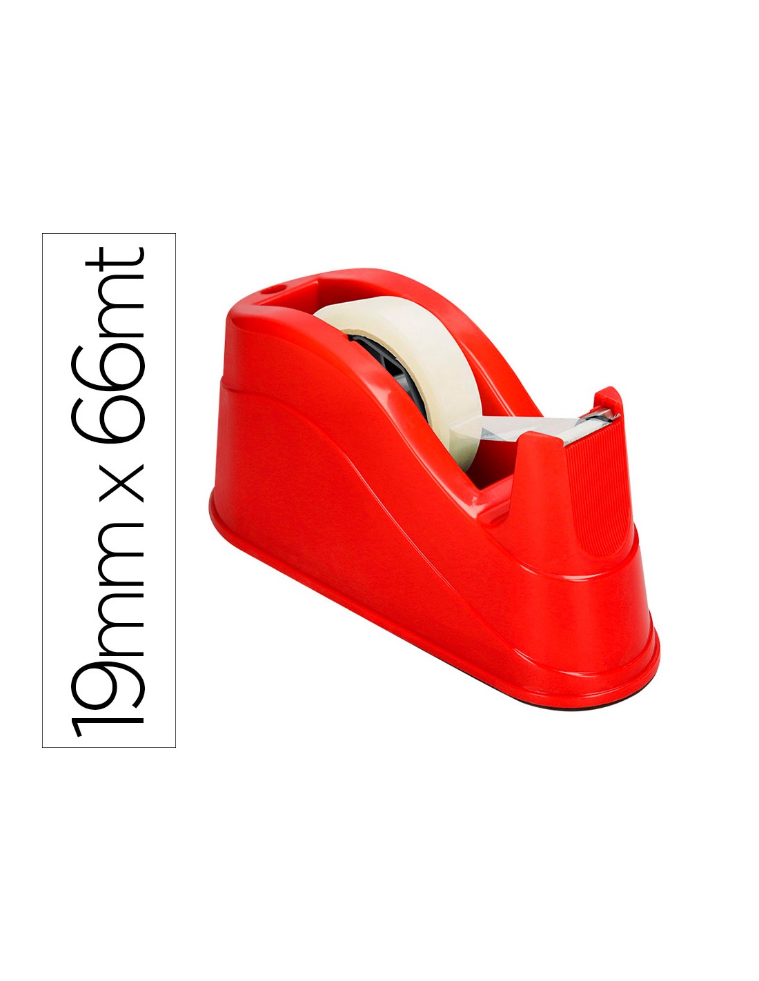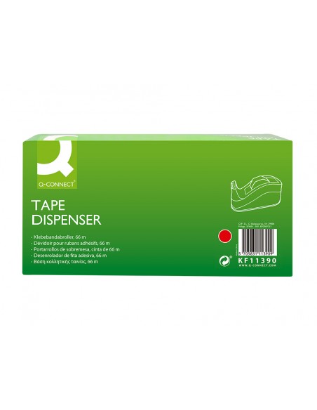 Portarrollo sobremesa q-connect plastico para cintas de 66 mt color rojo 220x100x70 mm