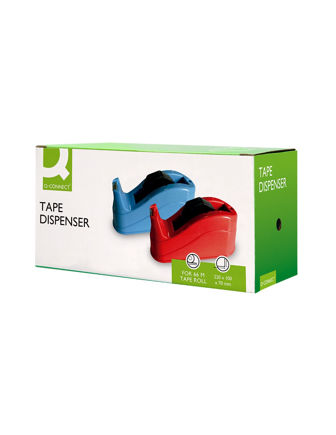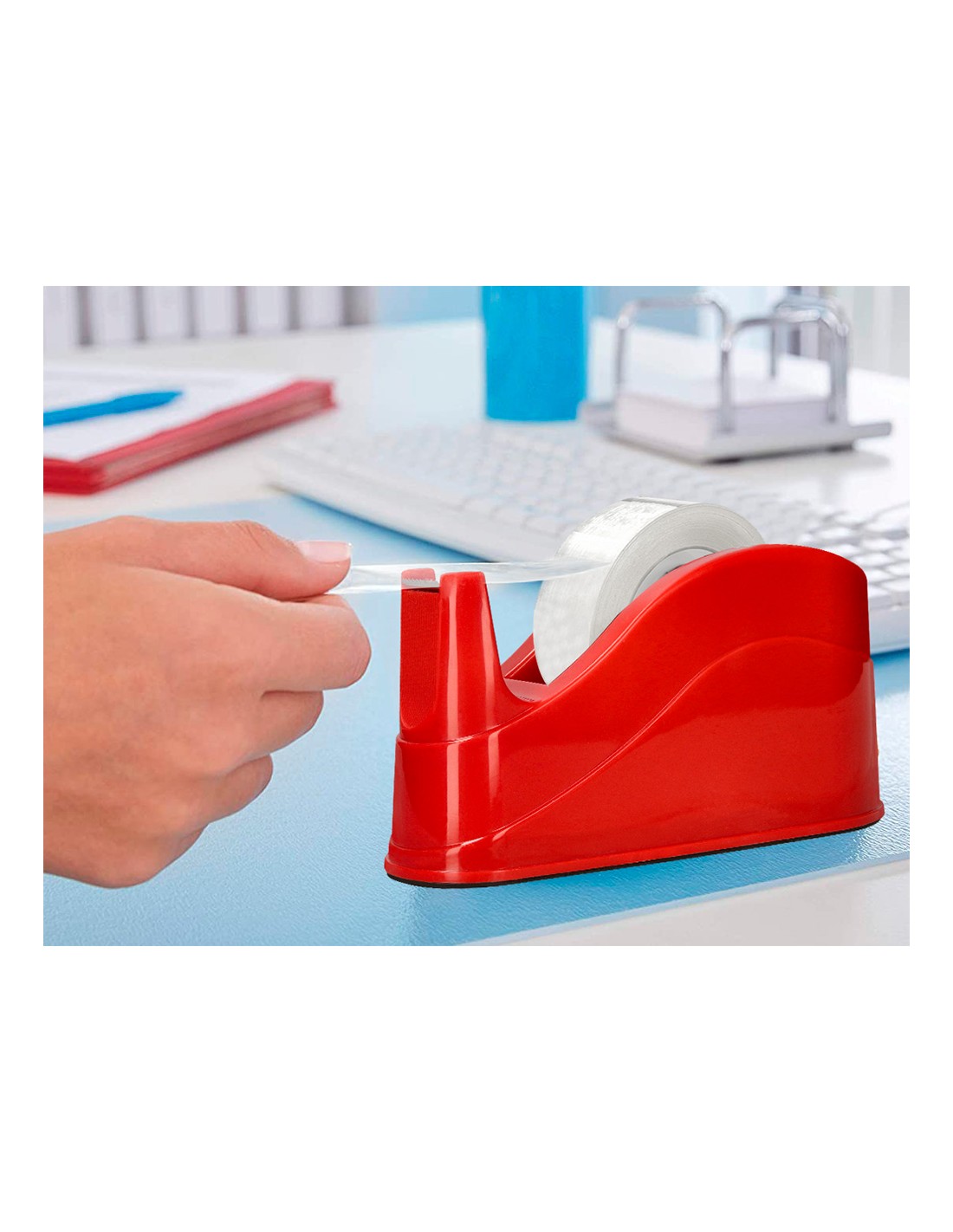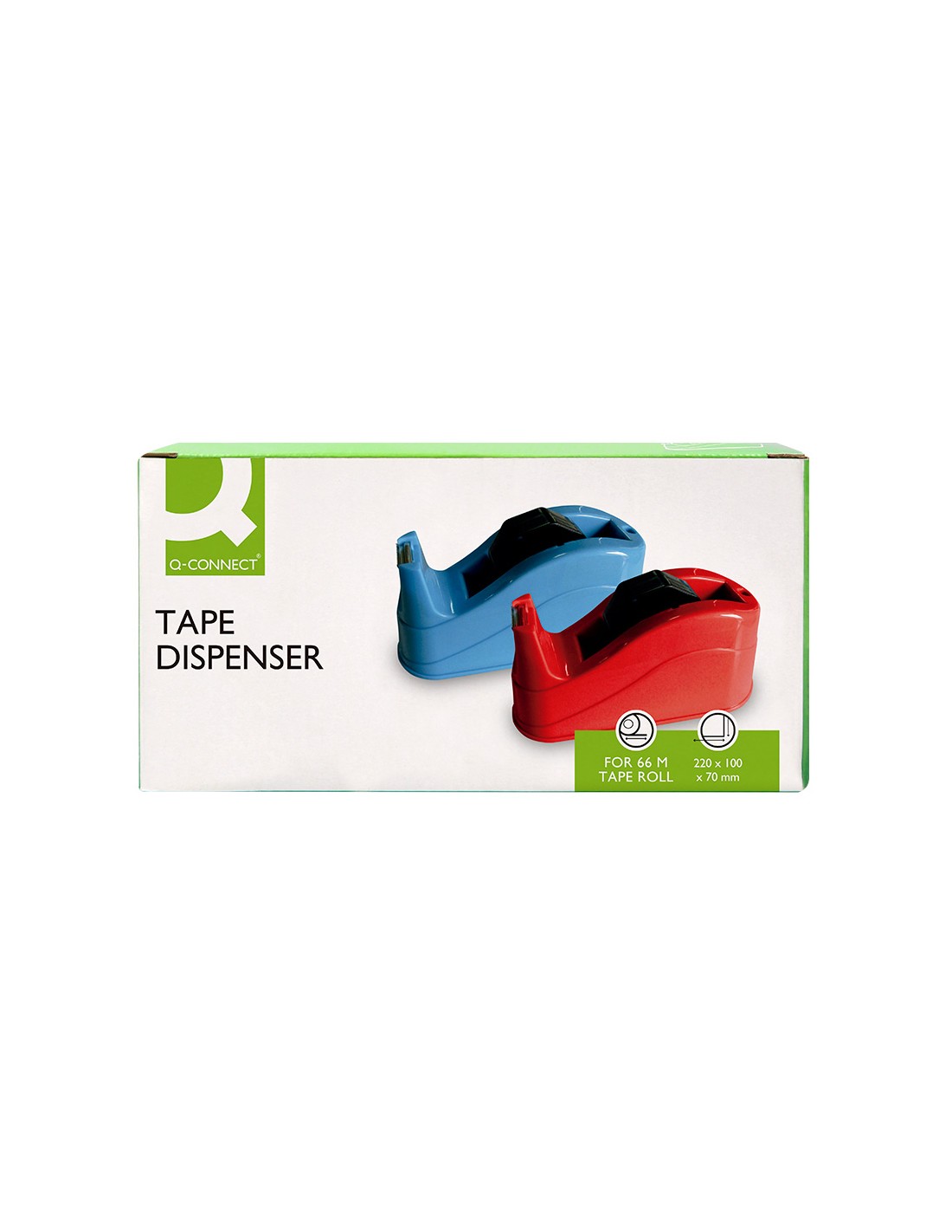 Portarrollos fabricado en plástico. Para cintas de hasta 66 m. Base antideslizante. Ideal para uso intensivo. No incluye cinta. Medidas 220 x 70 x 100 mm. Peso 1,5 kg.