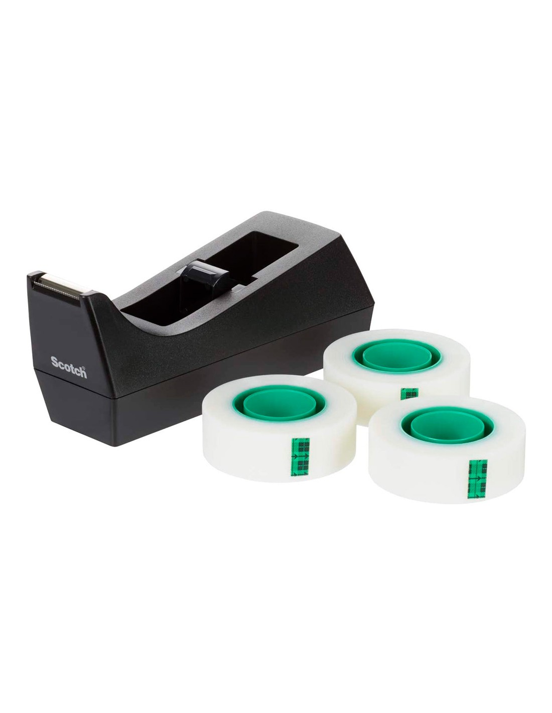 Portarrollo sobremesa scotch c38 color negro incluye 3 cintas scotch magic 33 mt x 19 mm