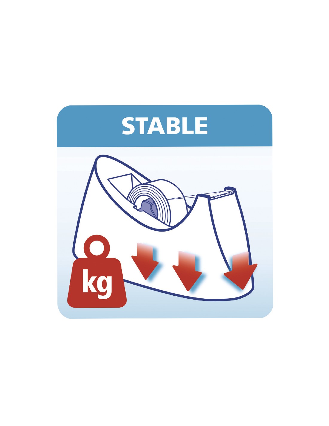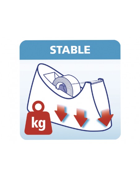Portarrollos de sobremesa de plástico. Antideslizante y estable, su peso garantiza una colocación segura. Corte limpio gracias a la afilada cuchilla dentada. Con alfombrilla protectora bajo el dispensador que evita arañar el escritorio u otros muebles. Incluye cinta adhesiva. Color negro. Para cintas de 33 m x 19 mm. Medidas 194 x 90 x 75 mm.