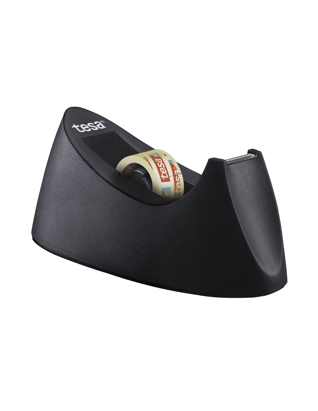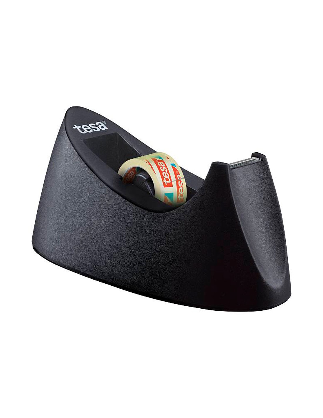 Portarrollo sobremesa tesa plastico easy cut curve negro para cinta de 33 mt x19 mm + 1 cinta tesafilm transparente