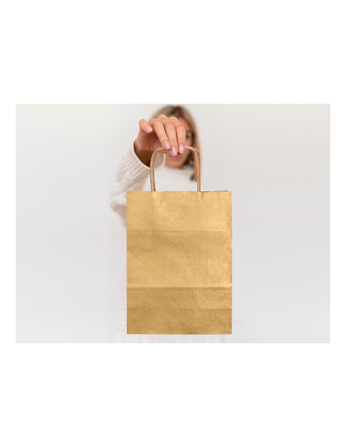 Bolsas fabricadas en papel kraft resistente. Ideales para el transporte de productos o para guardar paquetes de regalo. Con 2 asas retorcidas para una mayor comodidad. Disponible en diferentes colores y medidas.