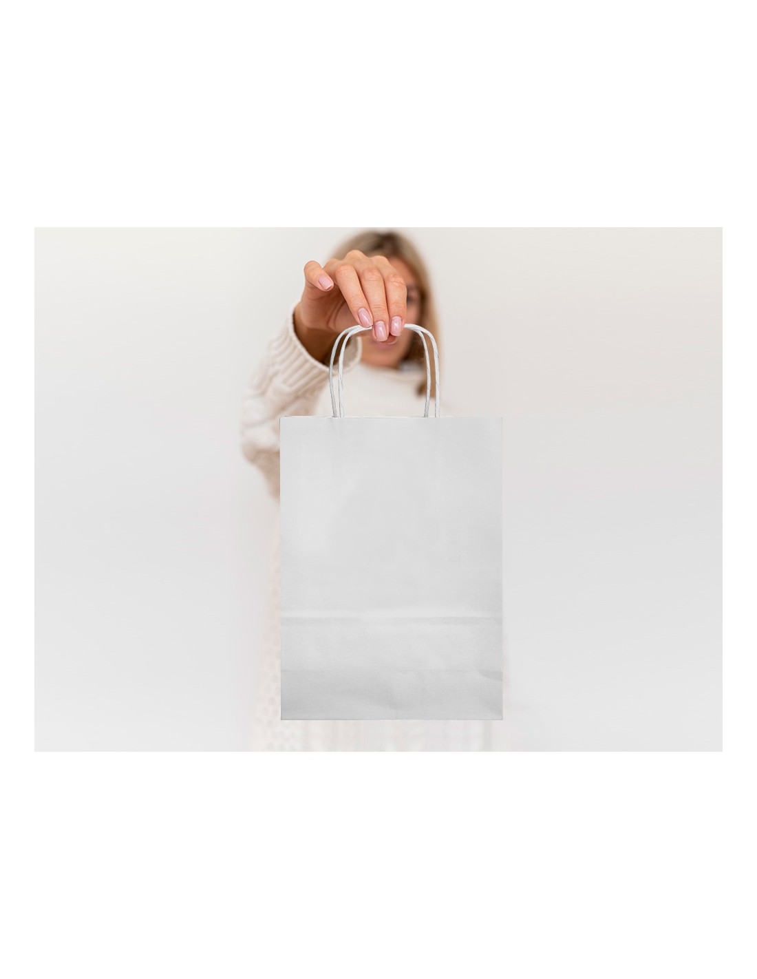 Bolsa de papel con asa retorcida celulosa blanco M 270x120x370 mm.Paquete de 25 unidades.