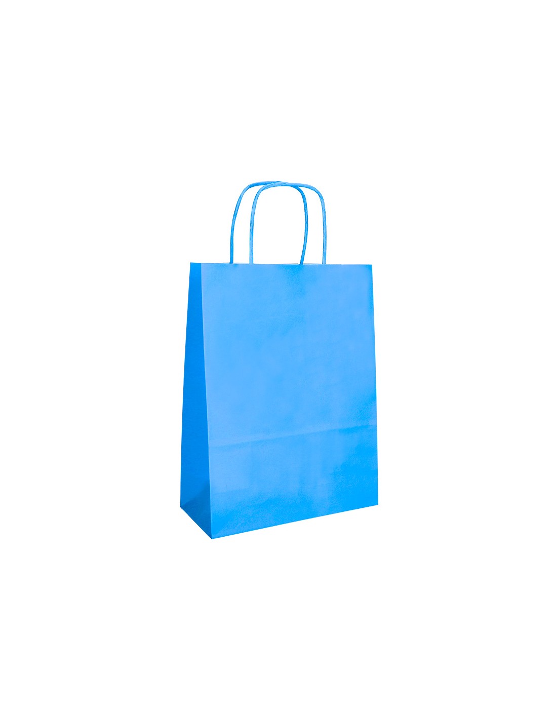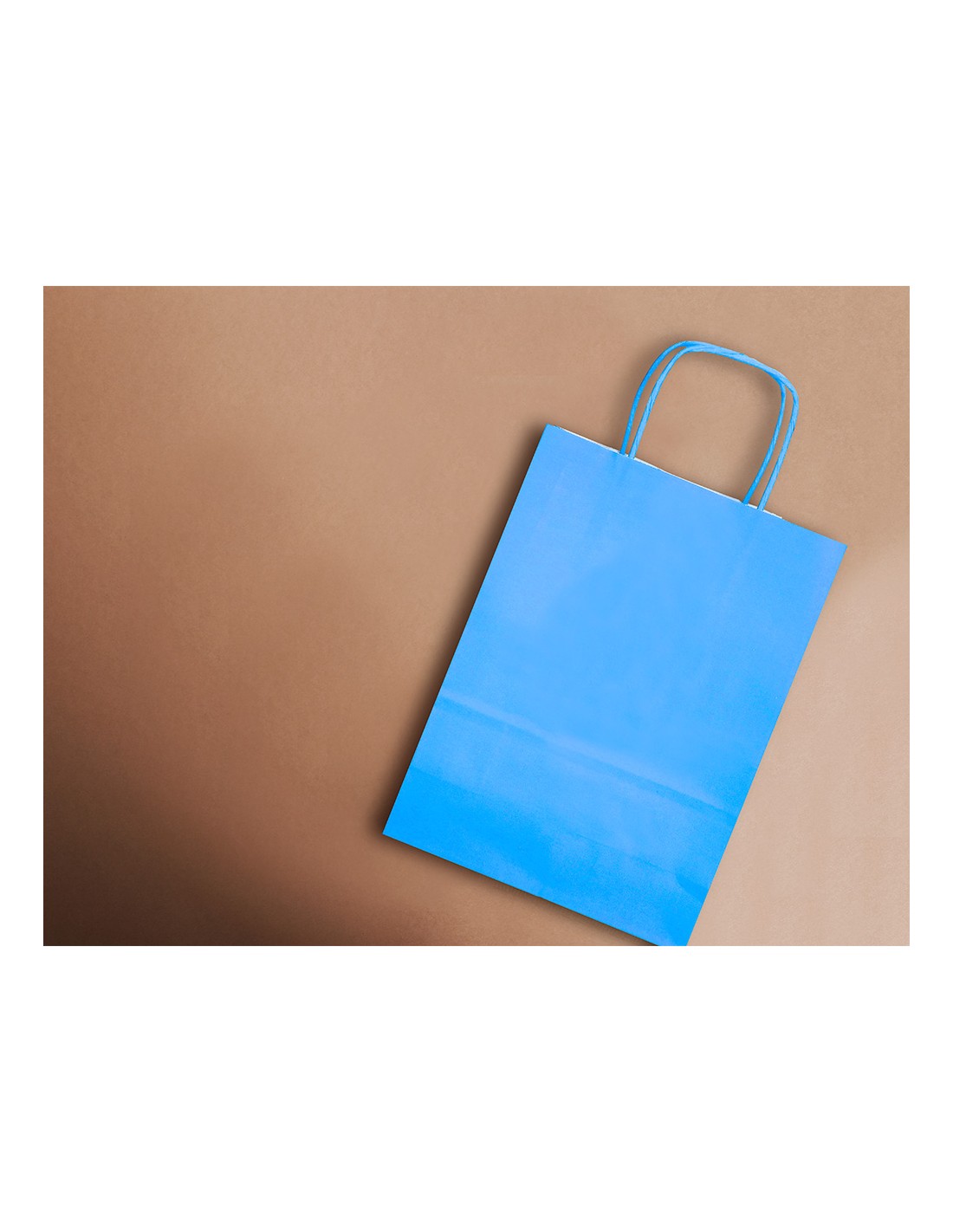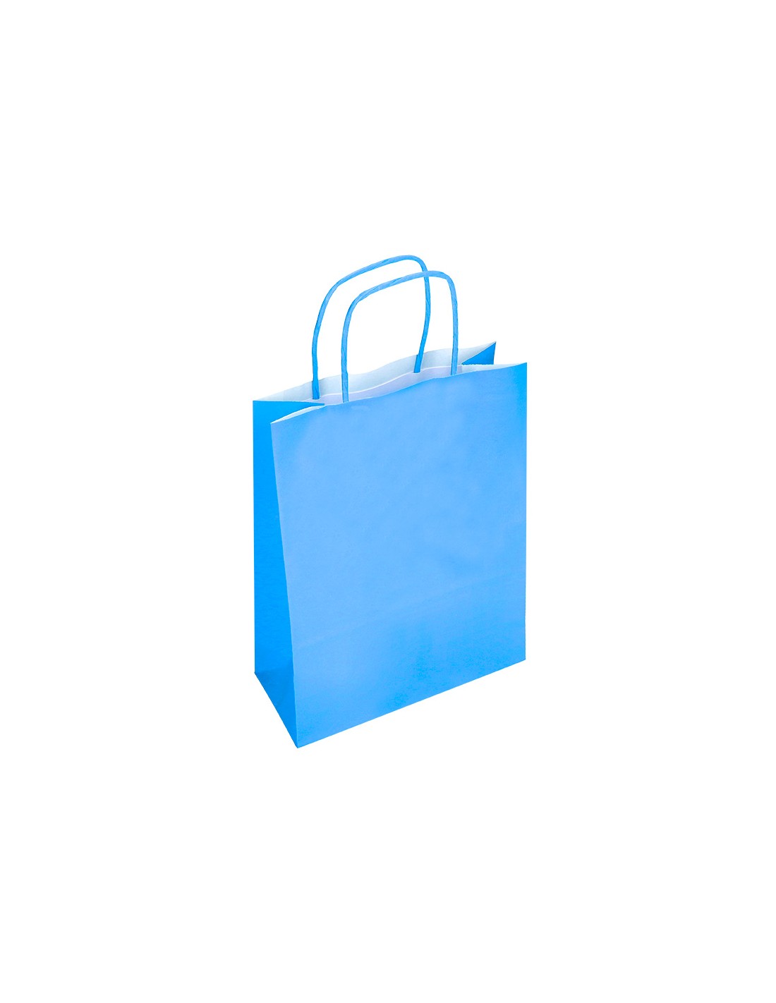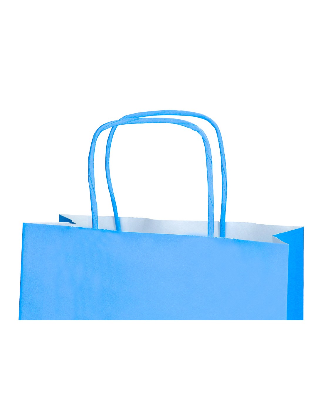 Bolsa de papel con asa retorcida celulosa celeste M 270x120x370 mm.Paquete de 25 unidades.