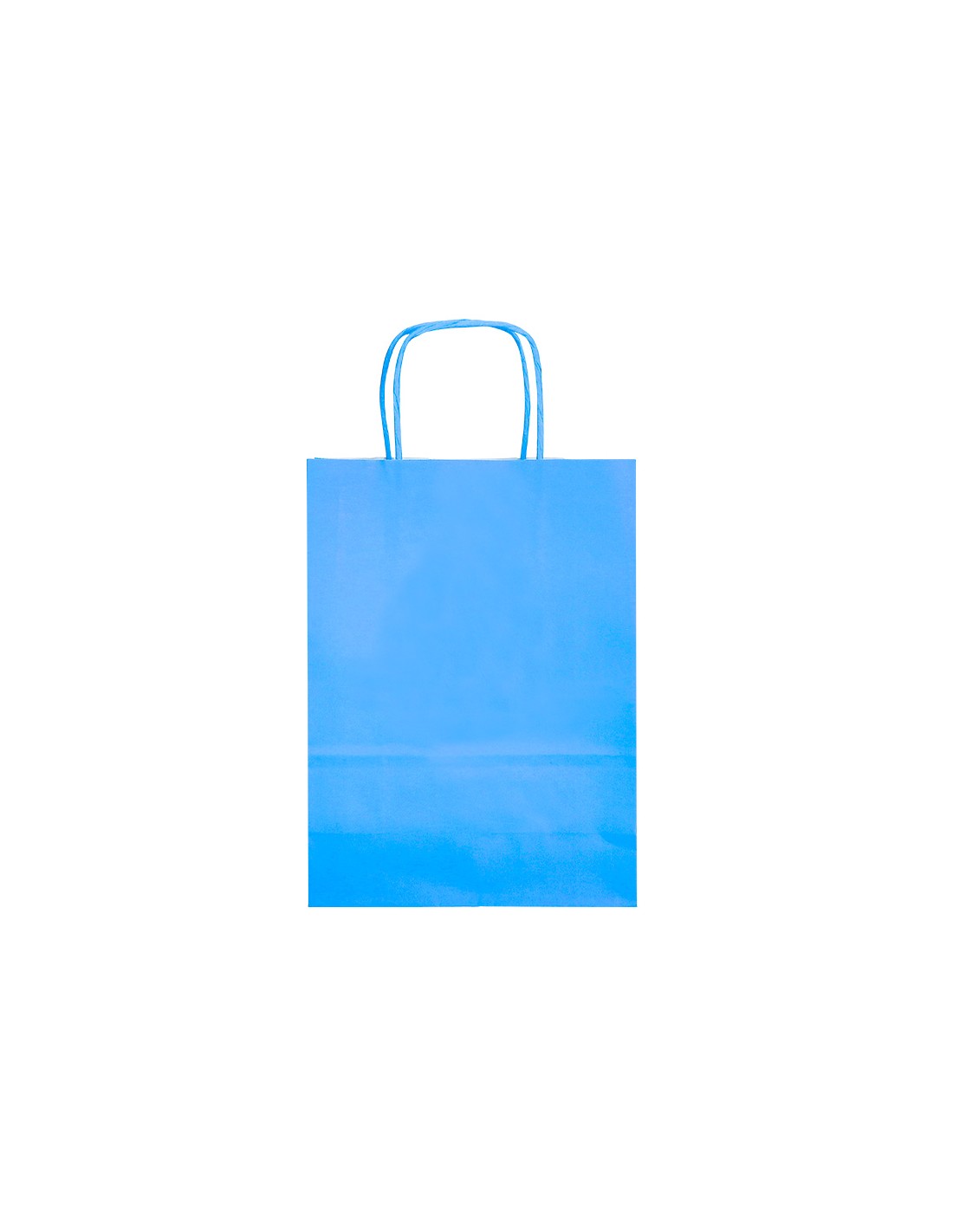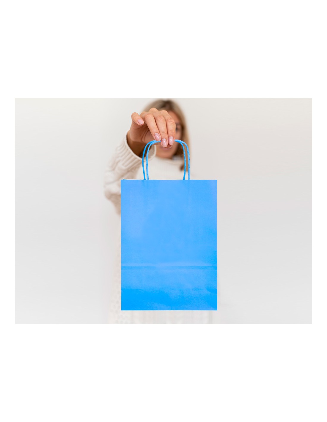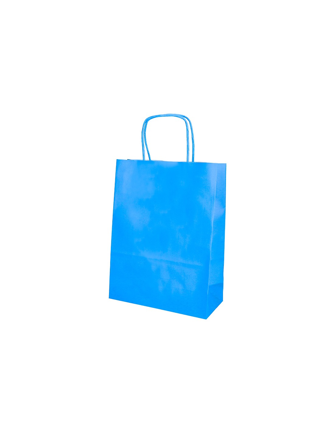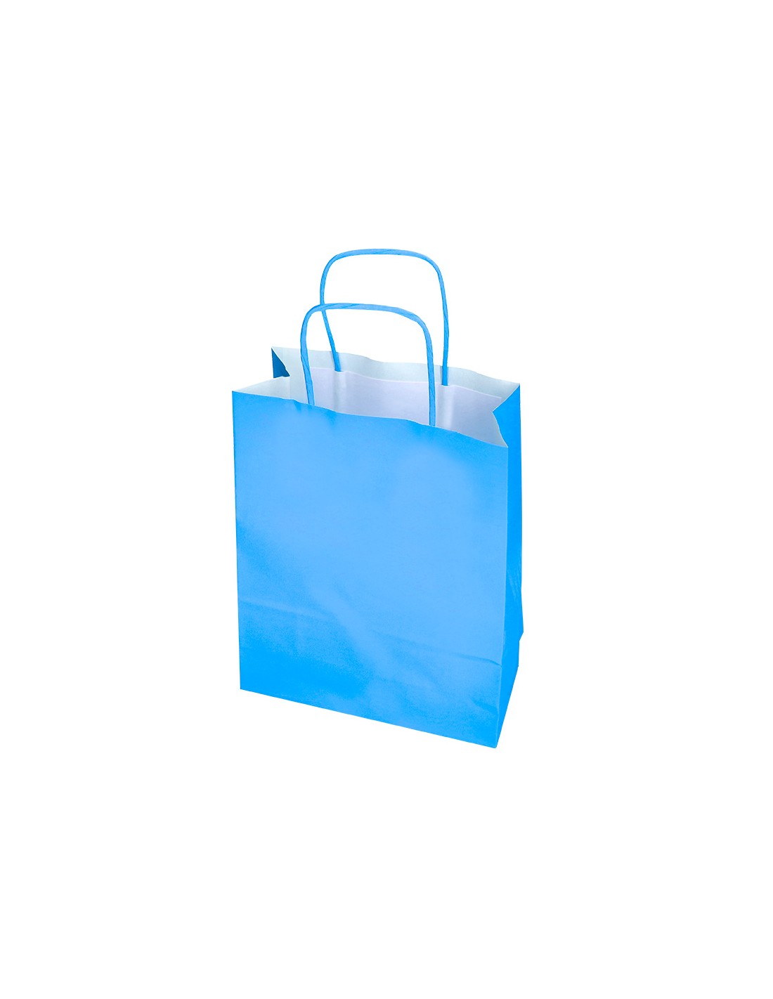 Bolsa de papel con asa retorcida celulosa celeste M 270x120x370 mm.Paquete de 25 unidades.