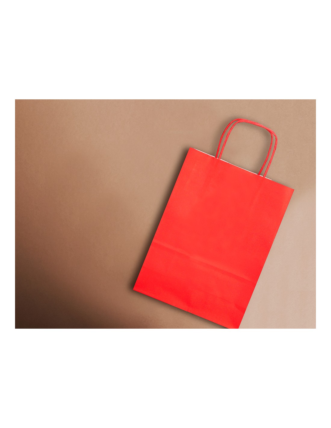 Bolsa de papel con asa retorcida celulosa rojo M 270x120x370 mm.Paquete de 25 unidades.