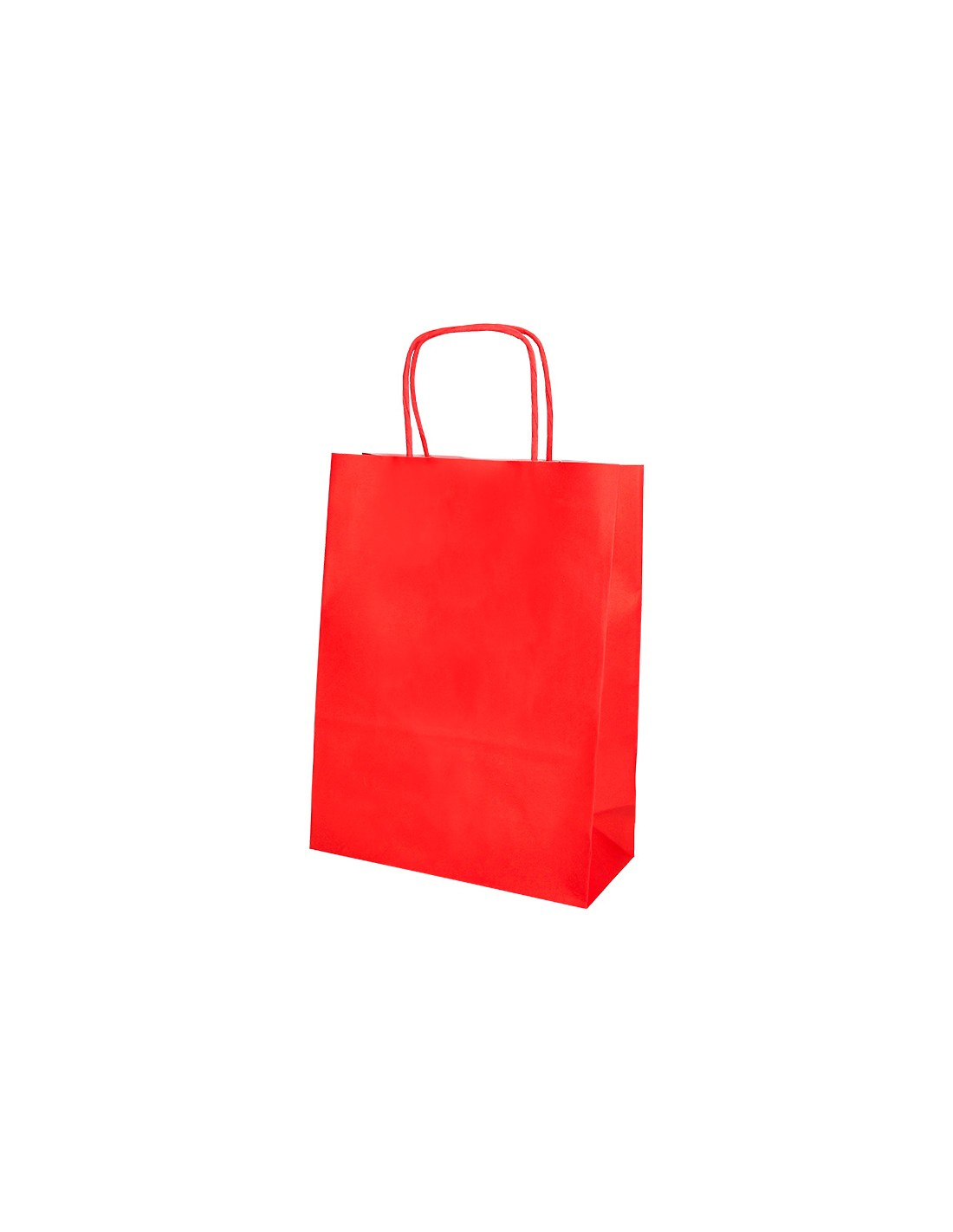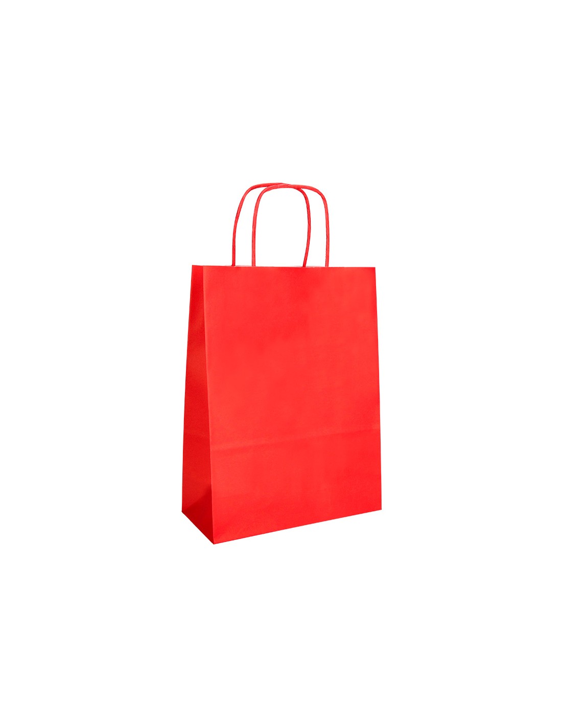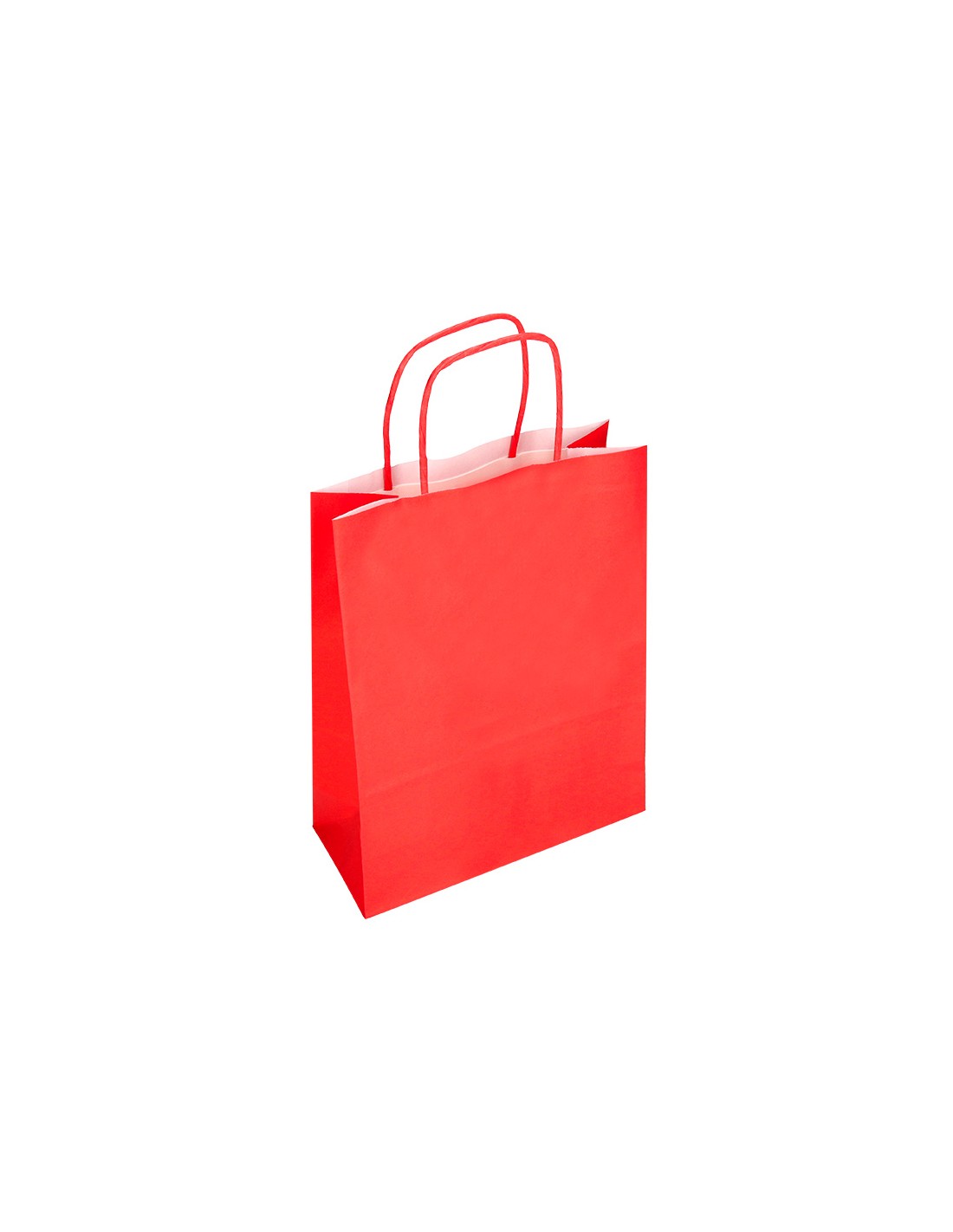 Bolsa de papel con asa retorcida celulosa rojo XS 180x80x240 mm. Paquetede 25 unidades.