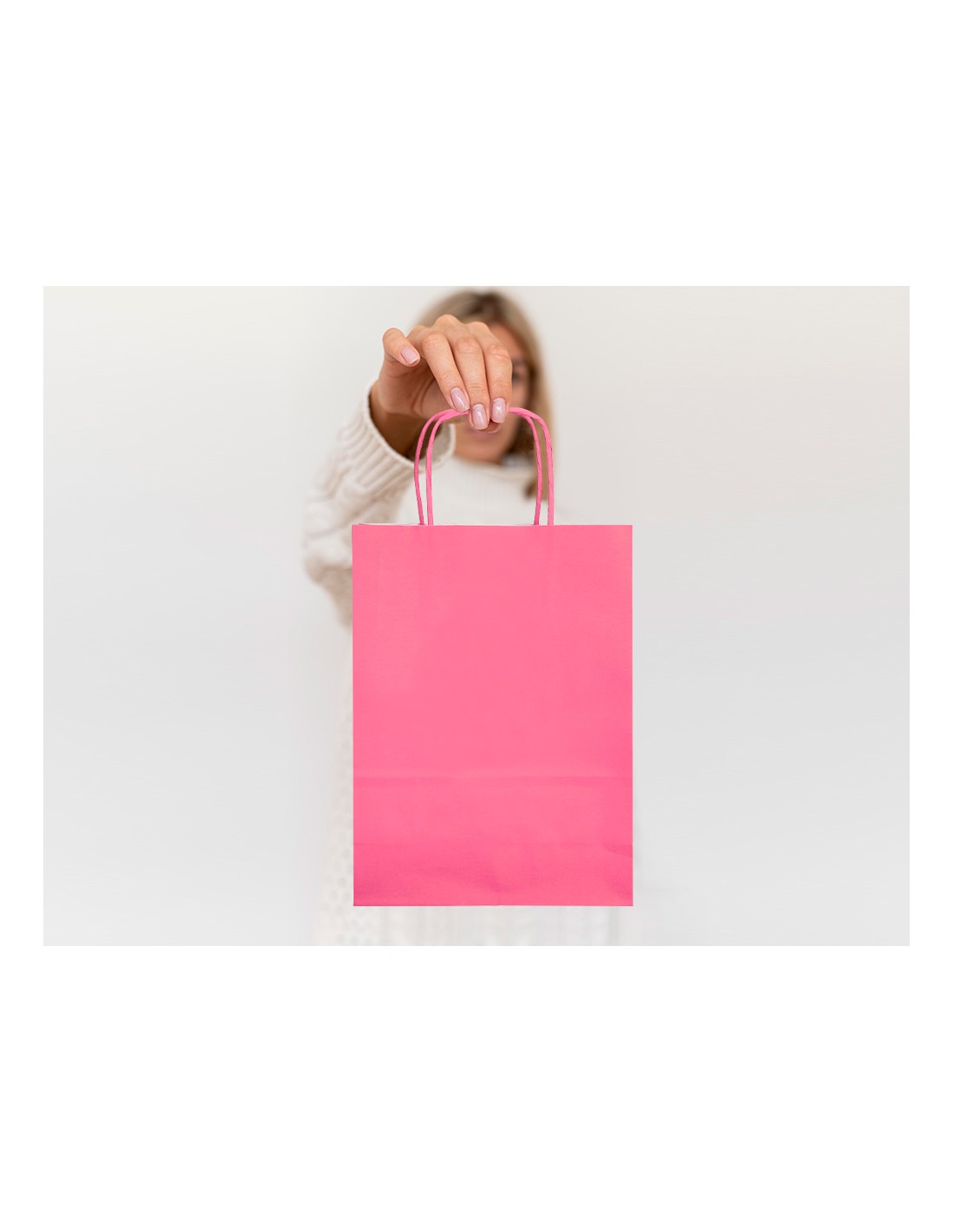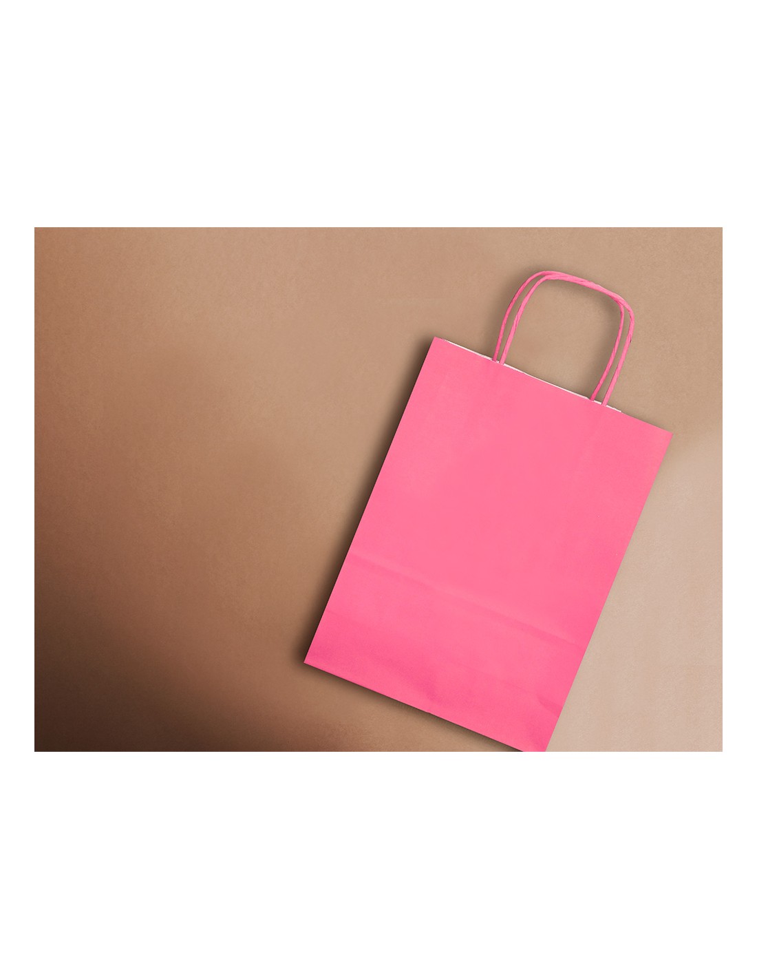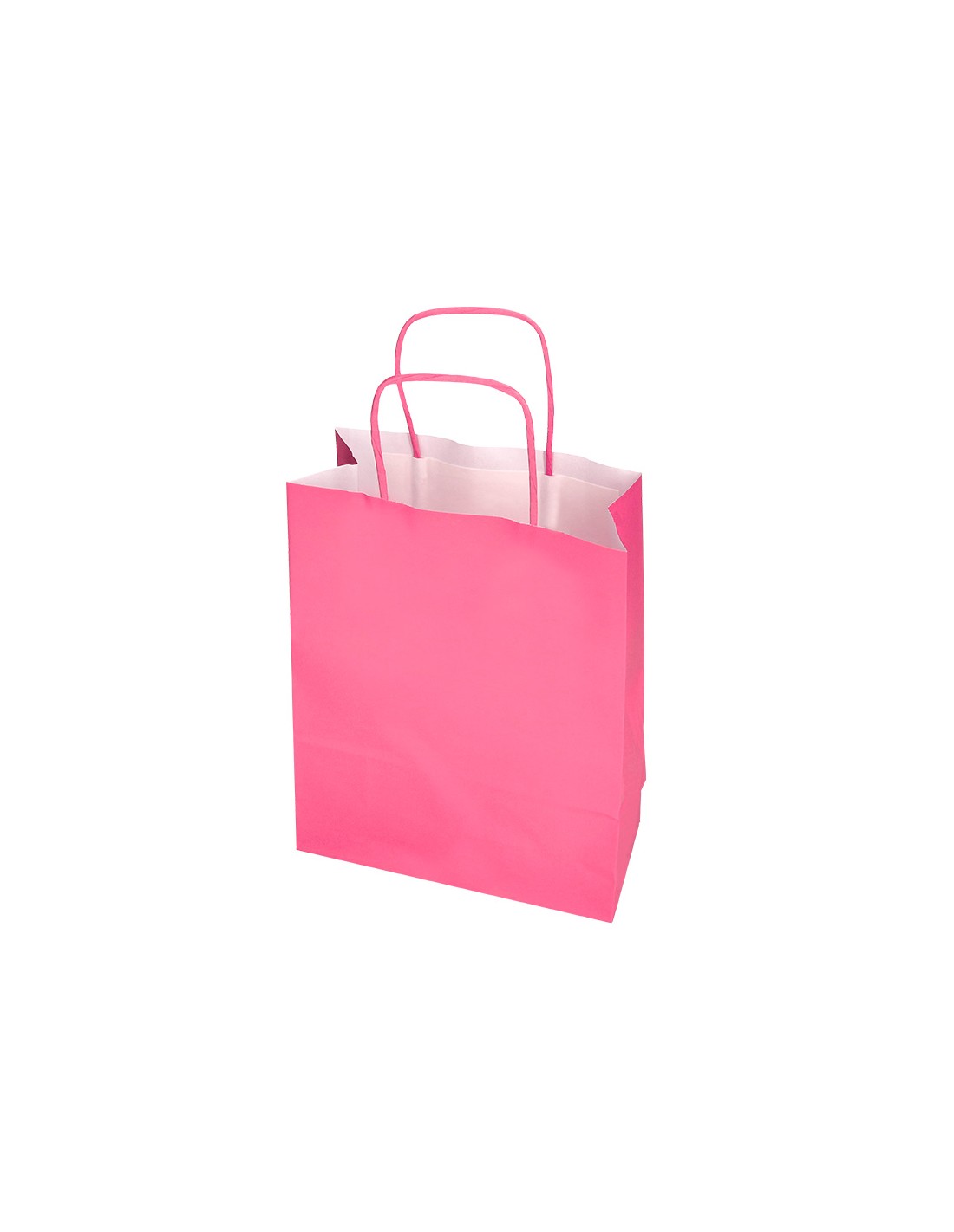 Bolsa de papel con asa retorcida celulosa rosa L 320x140x400 mm. Paquetede 25 unidades.
