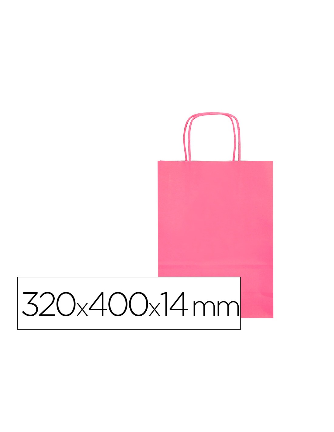 Bolsa papel q-connect celulosa rosa l con asa retorcida 320x400x14 mm