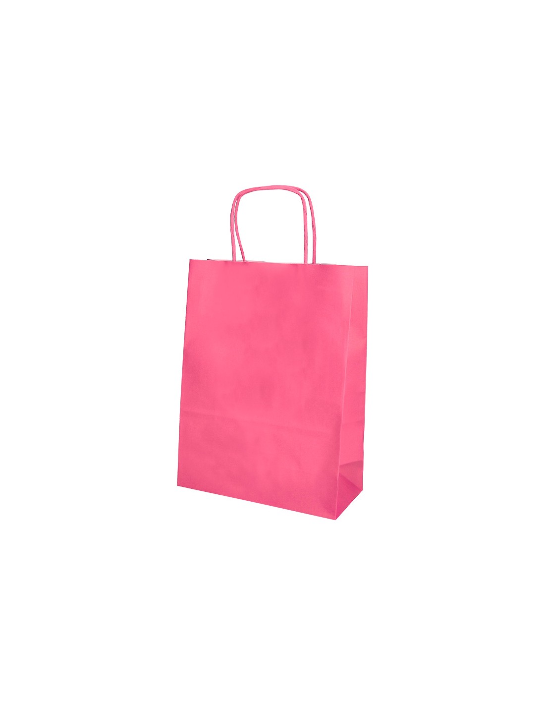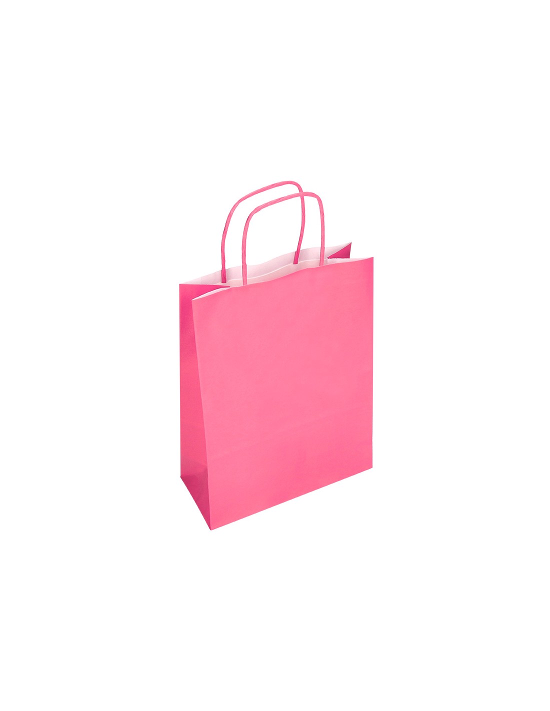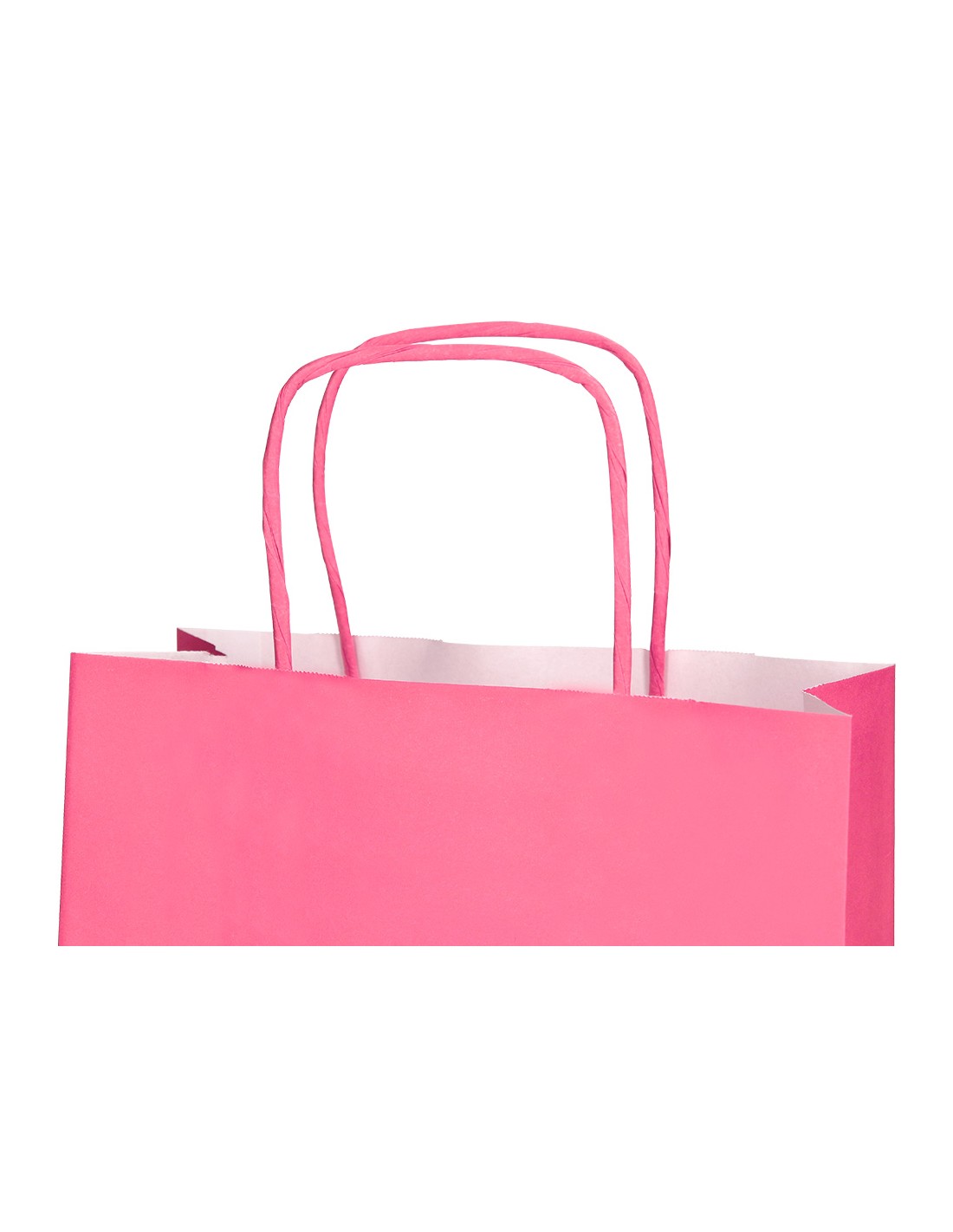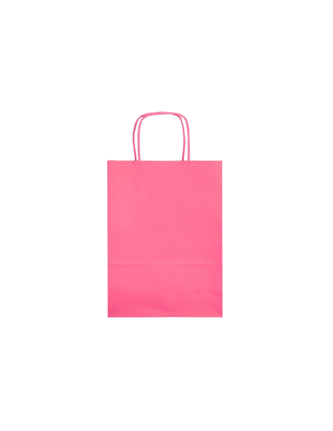 Bolsa de papel con asa retorcida celulosa XS rosa 180x80x240 mm. Paquetede 25 unidades.