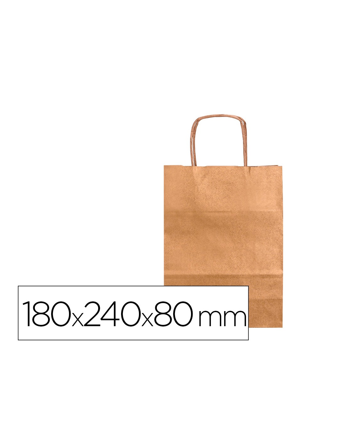 Bolsa papel q-connect kraft natural liso xs con asa retorcida 180x240x80 mm