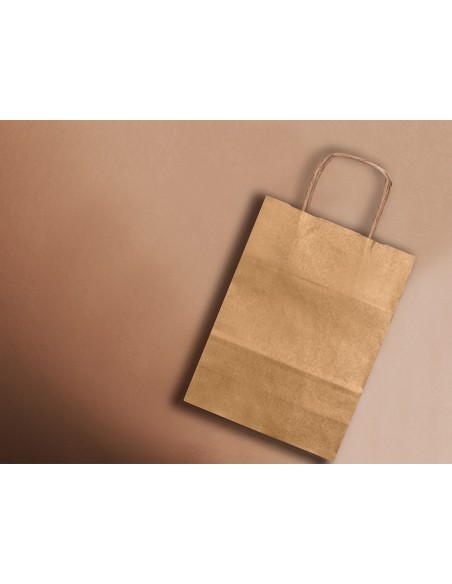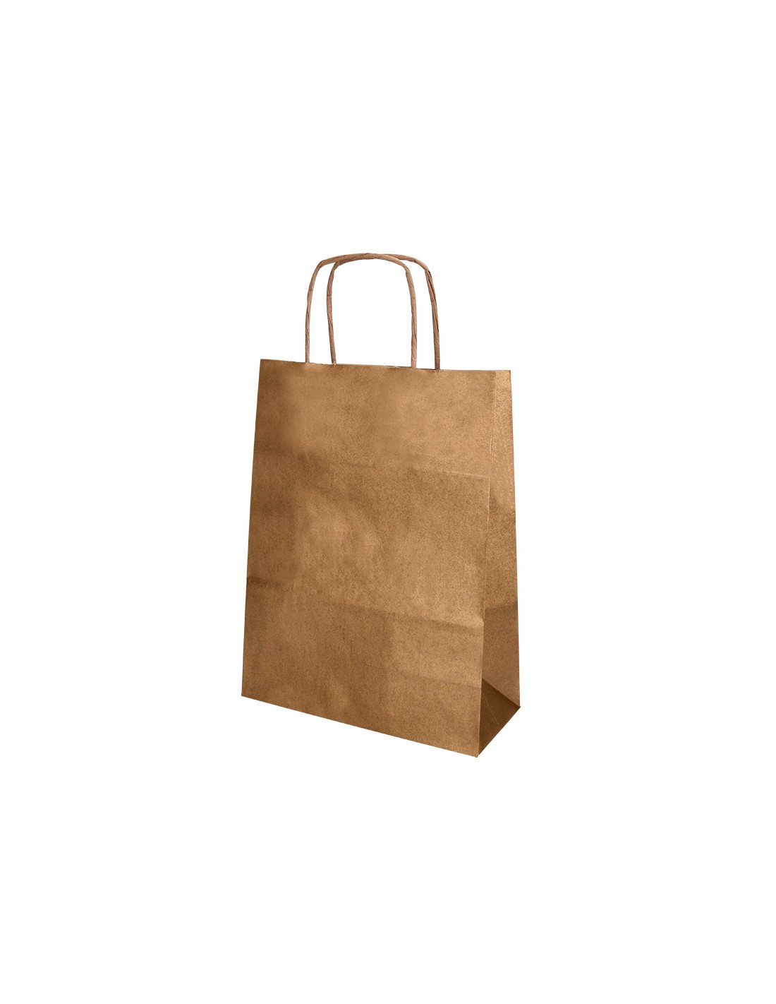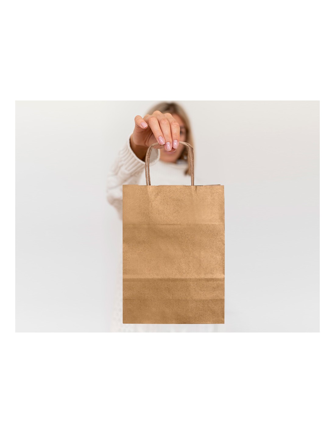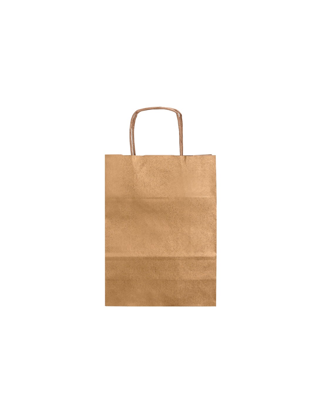 Bolsa de papel con asa retorcida kraft liso XS 180x80x240 mm. Paquete de25 unidades.