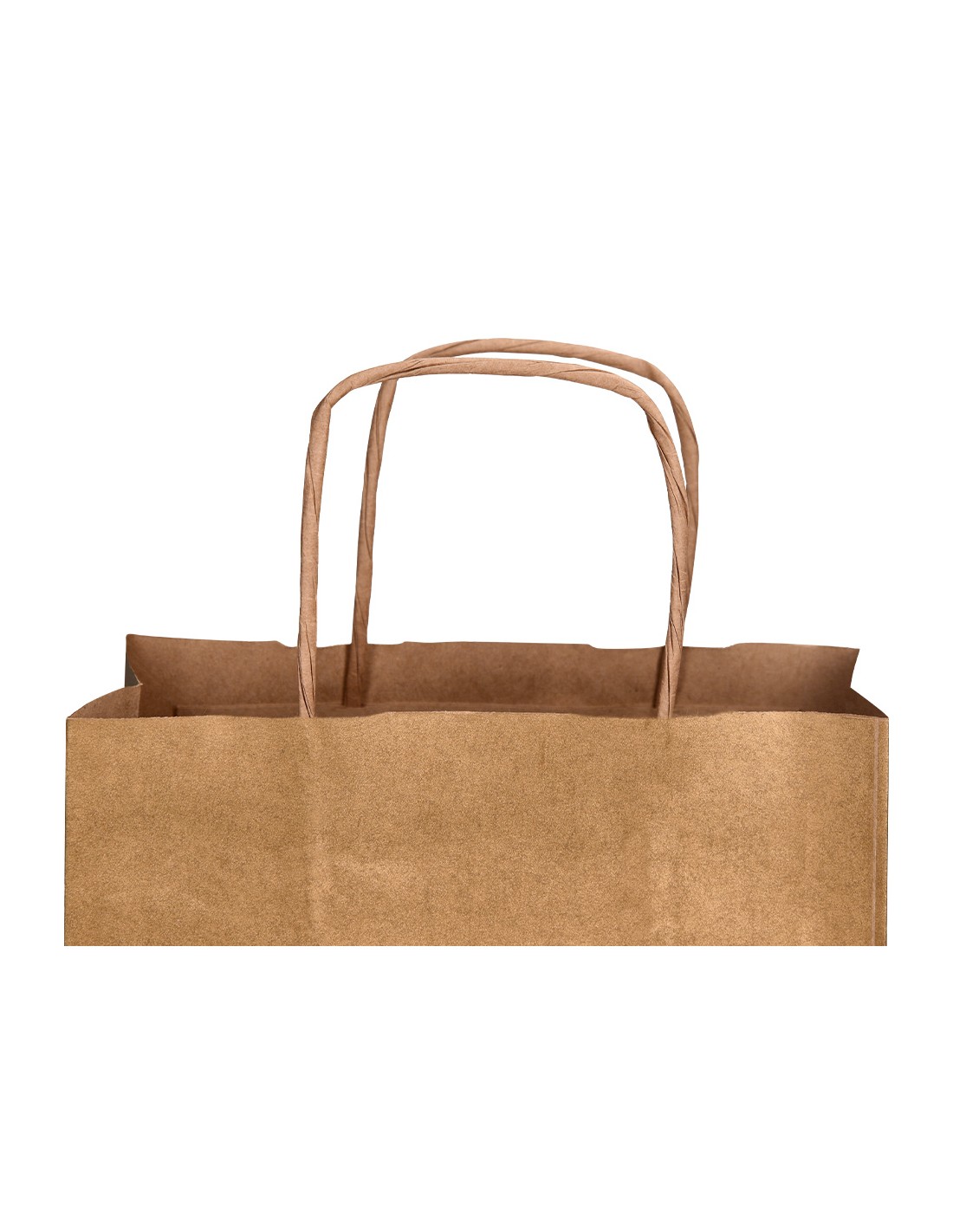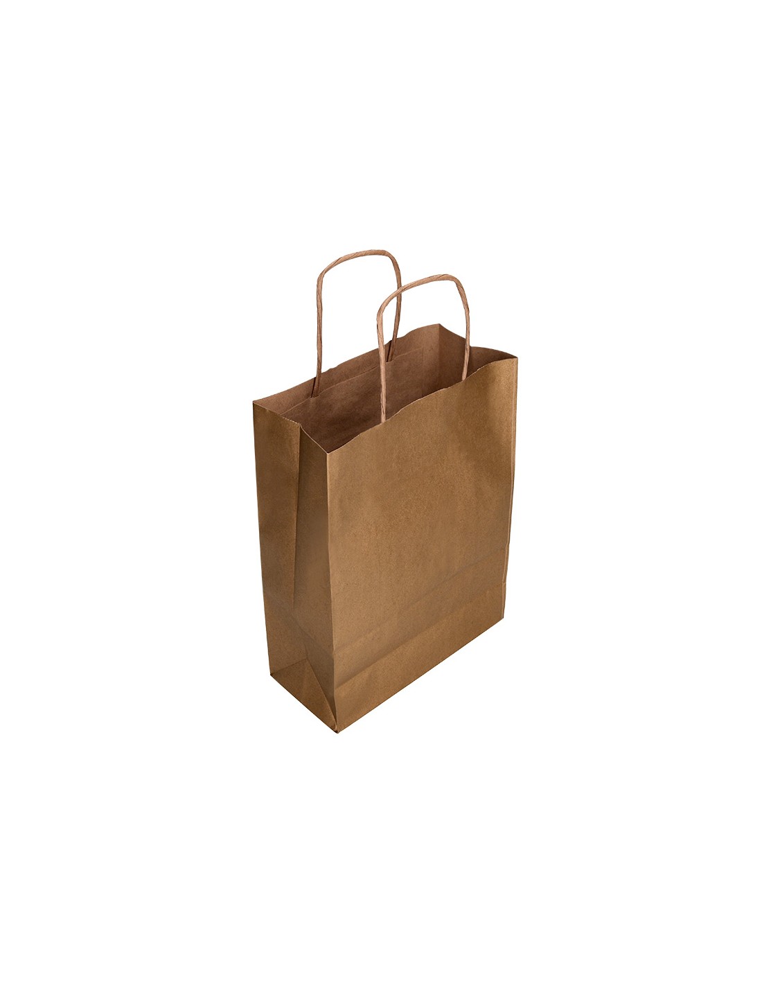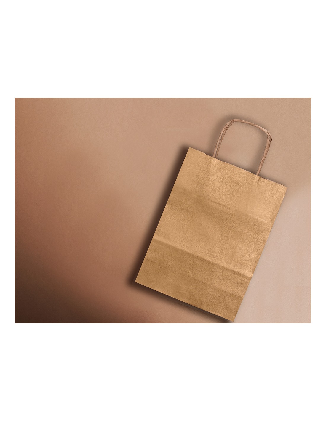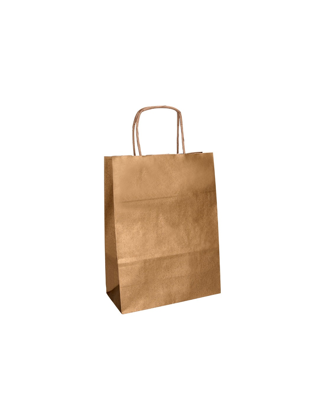 Bolsa de papel con asa retorcida kraft liso XS 180x80x240 mm. Paquete de25 unidades.