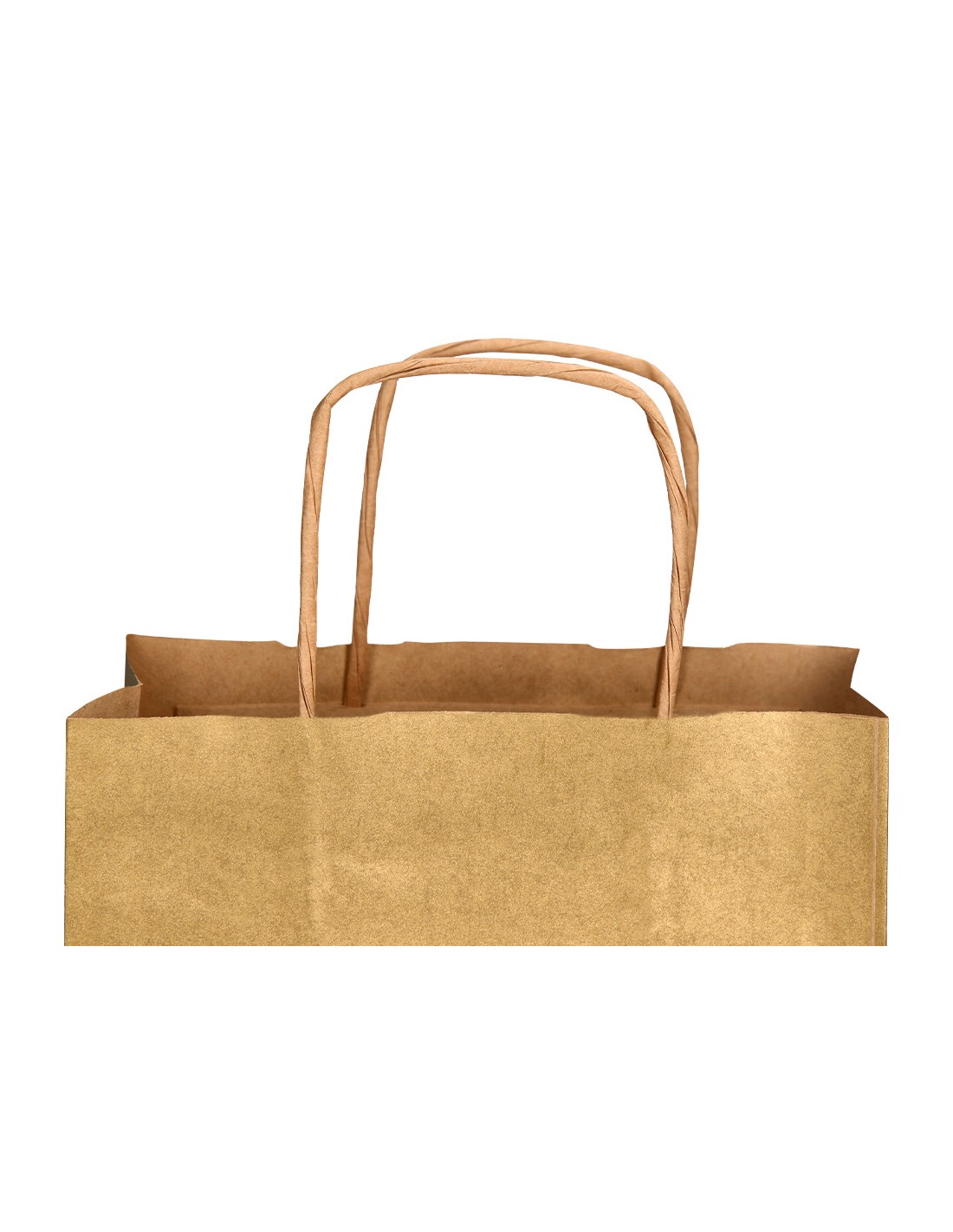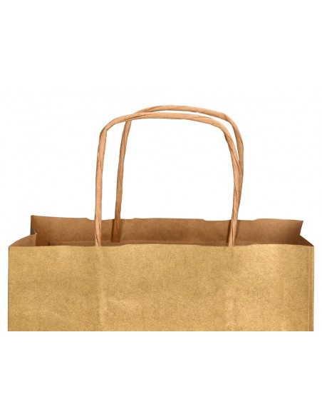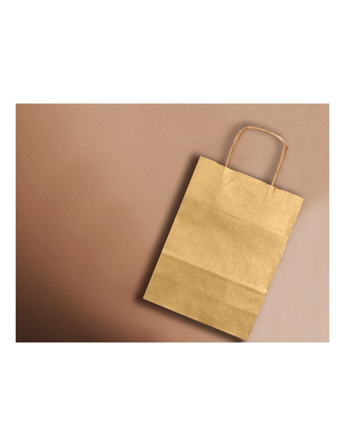 Bolsa de papel con asa retorcida kraft oro L 320x140x400 mm. Paquete de 25 unidades.