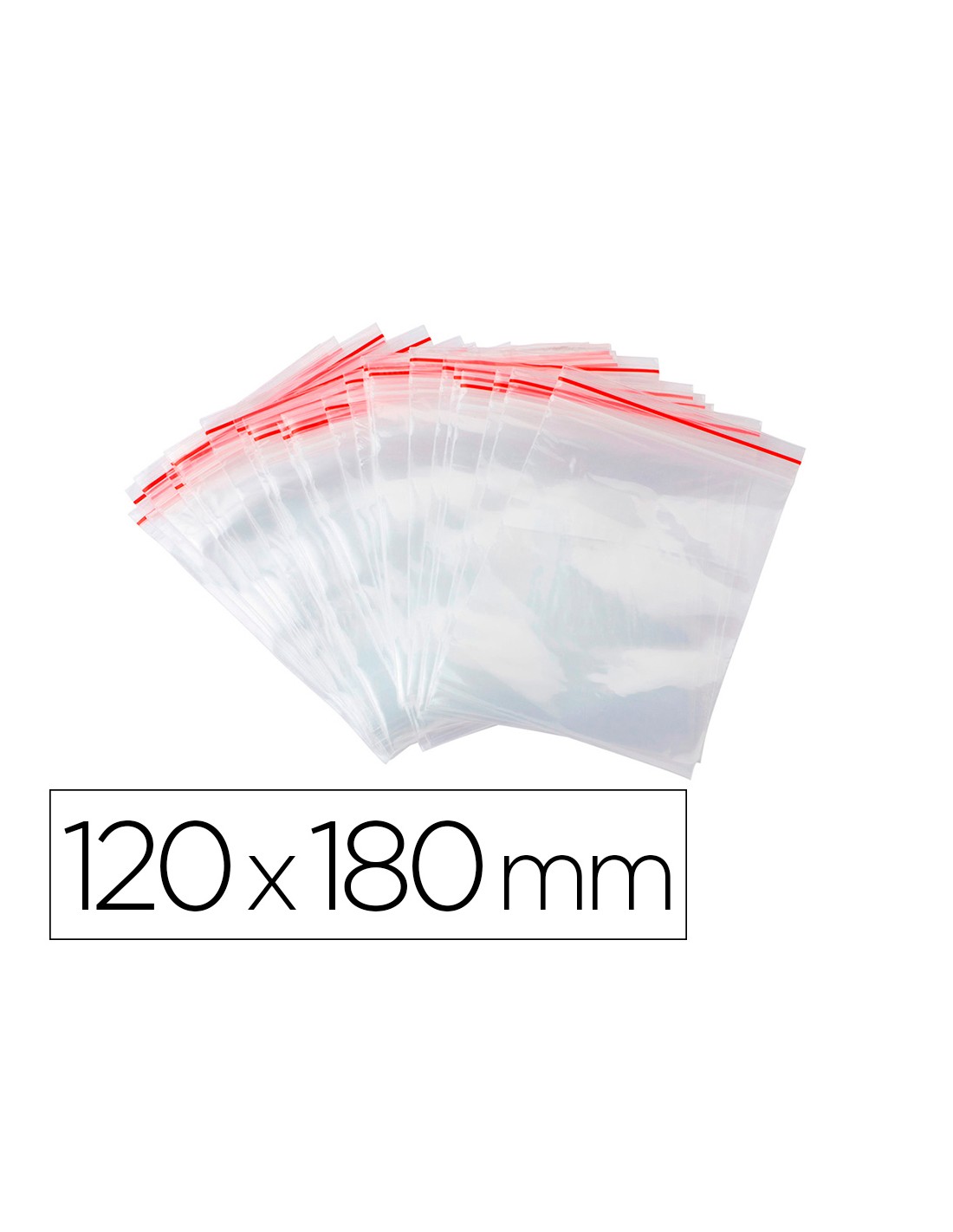 Bolsas fabricadas en plástico con sistema de autocierre por presión fáciles de volver a sellar. Color transparente con una línea roja y una perforación de 6 mm sobre el sello. Ideales para almacenar pequeños suministros de oficina o incluso alimentos. Grosor 50 micras.