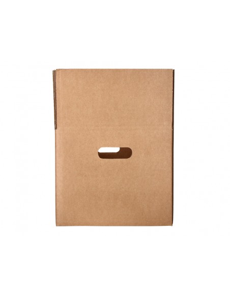 Caja para embalar y mudanzas con fondo automático. Montaje instantáneo, solo es necesario presionar en los vértices para que el fondo de la caja quede montado. Además evita la salida del producto interior. Con asas en los laterales para que puedas moverlas de forma cómoda y segura Ideal tanto para embalaje y mudanzas como para envíos e-commerce y online de todo tipo de productos. También es perfecta para almacenar gracias a que se pueden apilar una encima de otra. Fabricada en cartón 100% reciclado y reciclable de canal simple de 5 mm de espesor. Esta caja para envíos en color kraft tiene unas medidas de 425x300x200 mm. Con capacidad para 25 litros.