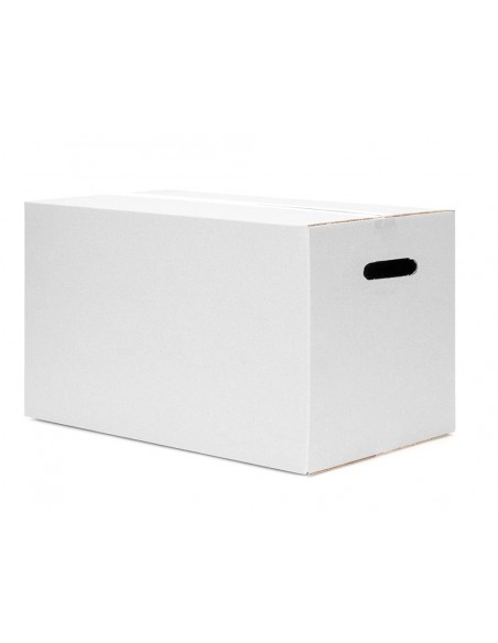 Caja para embalar y mudanzas americana. Caja ultrarresistente con doble canal para envíos pesados. Con asas en los laterales para que puedas moverlas de forma cómoda y sin riesgo de corte. Ideal tanto para embalaje y mudanzas como para envíos e-commerce y online de todo tipo de productos. También para almacenar gracias a que se pueden apilar una encima de otra. Plegable de cuatro caras laterales y base rectangular que se cierra tanto en su parte inferior como en su parte superior por medio de 4 solapas. Las solapas más largas cierran al centro, sin dejar espacio para que se escape el contenido. Fabricada en cartón 100% reciclado y reciclable de canal doble de 7 mm de espesor. Esta caja para envíos en color blanco tiene u nas medidas de 450x280x375 mm. Con capacidad para 47 litros.