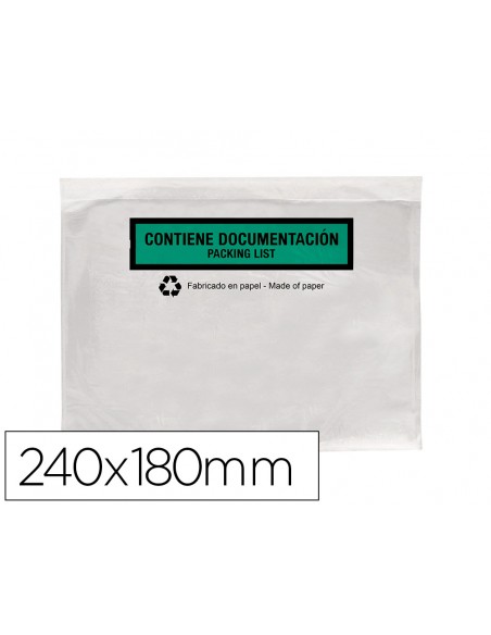 Sobre autoadhesivo q-connect portadocumentos multilingue 240x180 mm sin ventana 100% papel paquete de 100 unidades