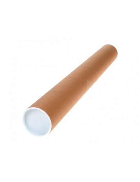 Tubo fabricado en cartoncillo encolado 100% reciclado de 1,8 mm de espesor. Con dos tapas de plástico, una en cada extremo. Alta resistencia. Perfecto para transporte, almacenaje y protección de documentos de gran formato.