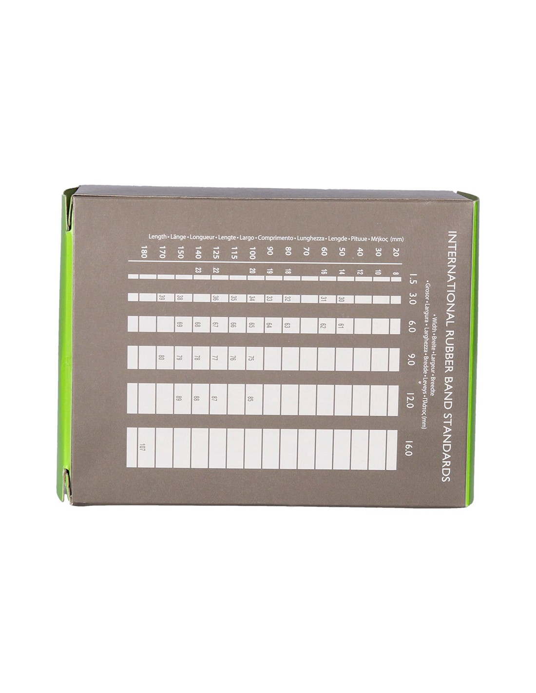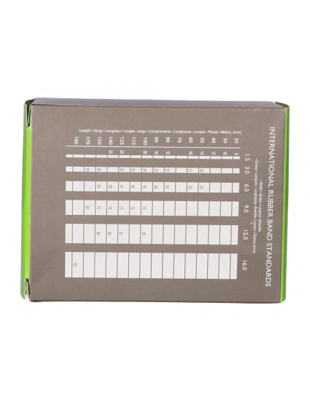 80 % caucho de alta calidad y resistencia. Ancho de 2 mm. Su presentación en caja facilita su conservación y almacenamiento.