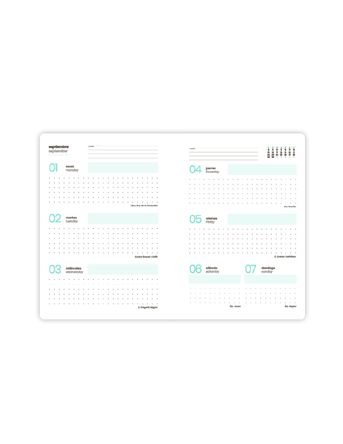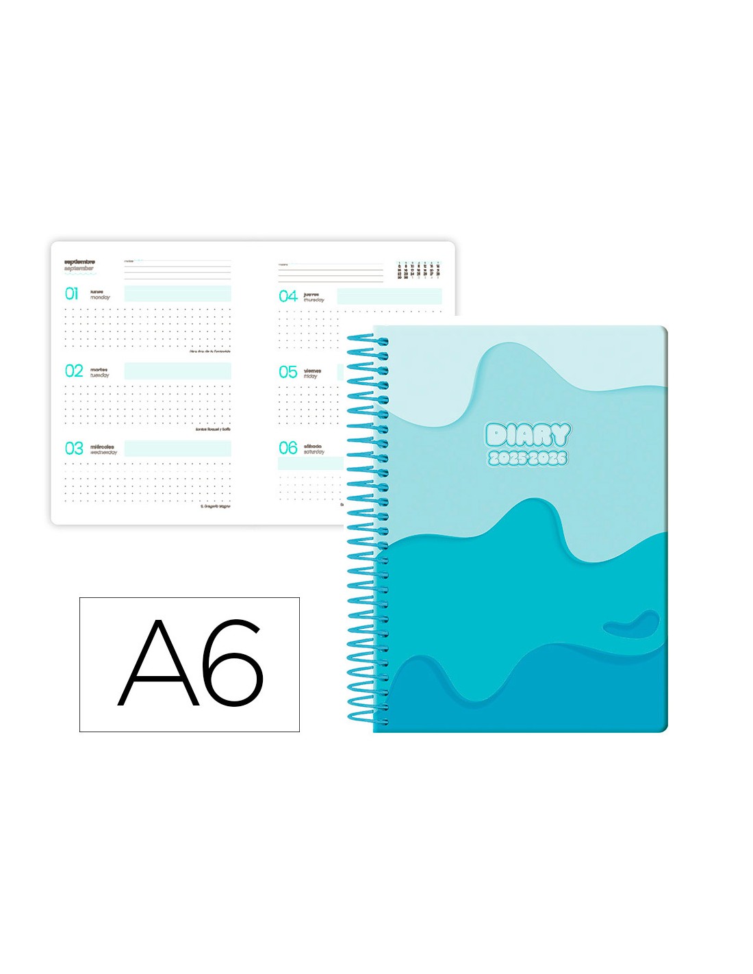 Agenda escolar liderpapel 25-26 espiral melting azul semana vista a6 bilingüe papelfsc 80 gr