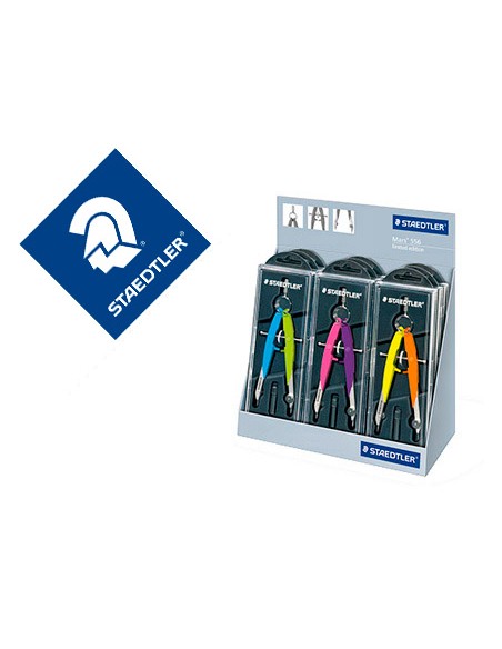 Compas staedtler micrometrico 556 con husillo y rueda central color neon expositor sobremesa de 9 unidades