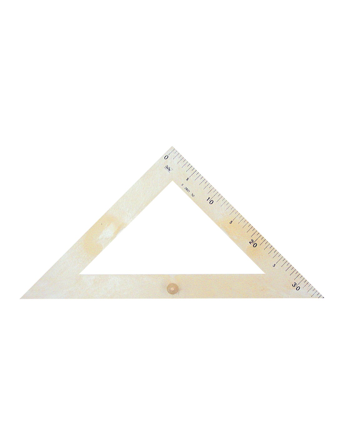 Uso escolar, para pizarra. Fabricado en plástico inyectado de baja presión imitación madera. 100% reciclable. Con agarradera. Graduación en cm. Longitud hipotenusa 50 cm.