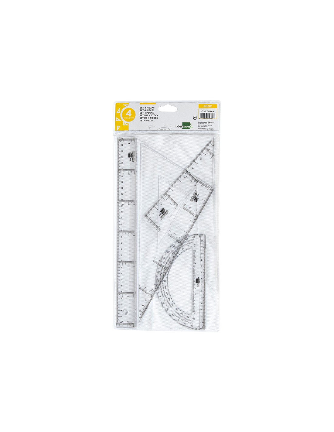 LIDERPAPELJuego escuadra y cartabon 25cm regla 30cm y semicirculo 15cm liderpapel en petaca incolora
