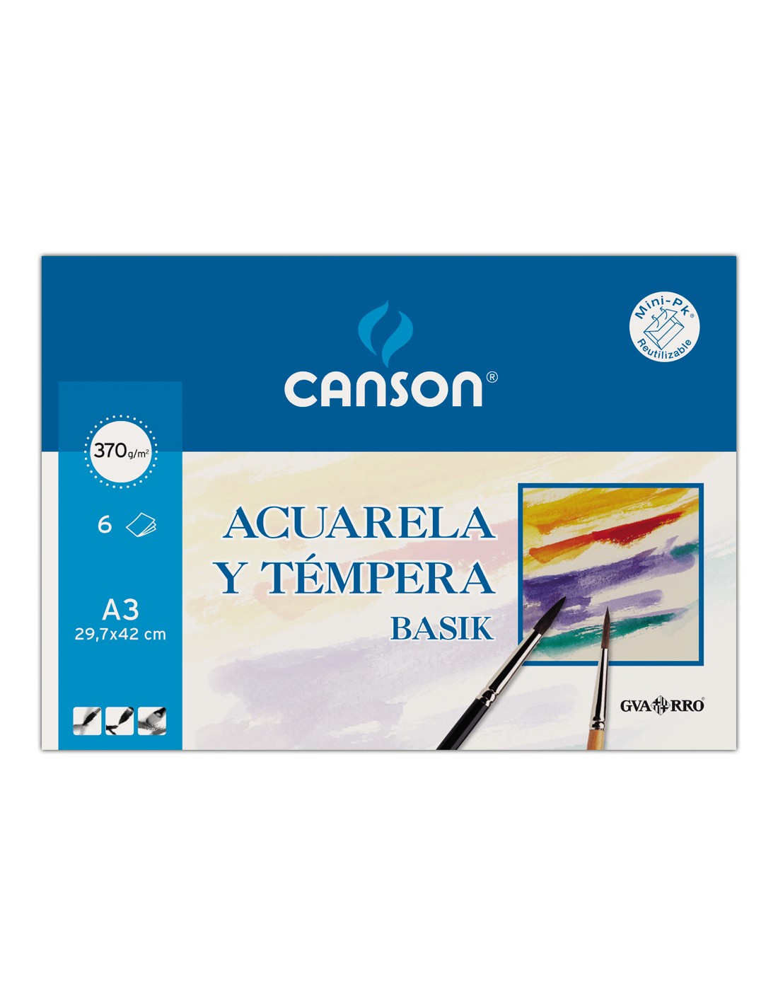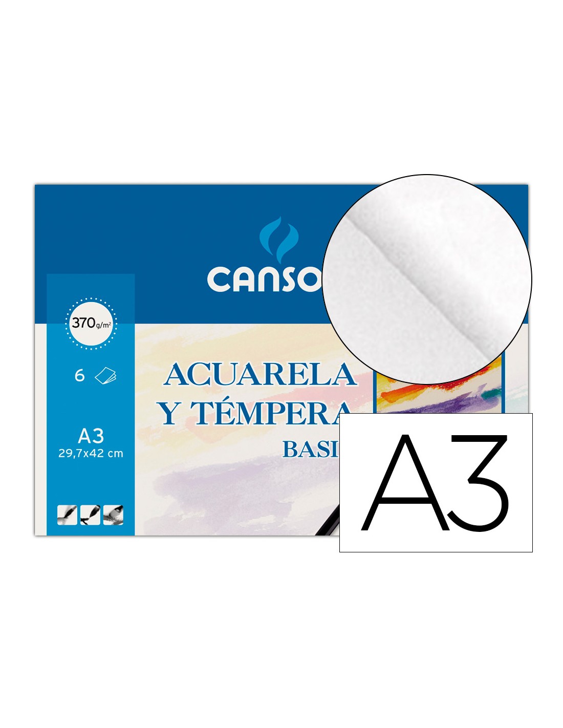 Papel acuarela basik canson din a3 370 gr pack de 6 hojas