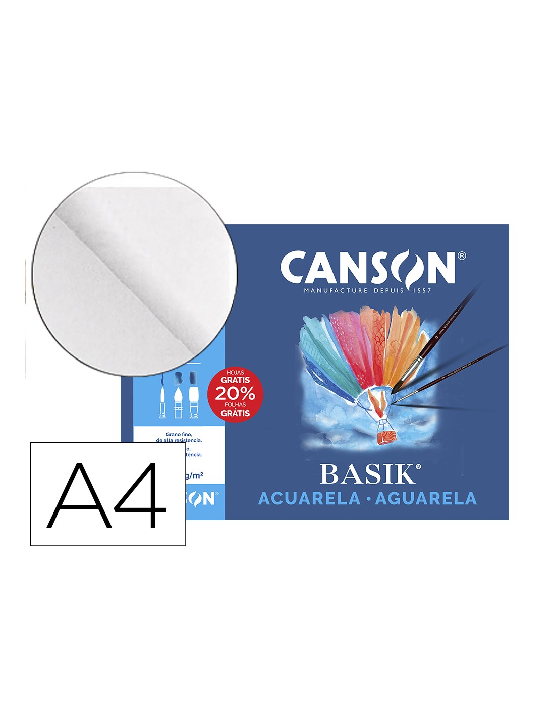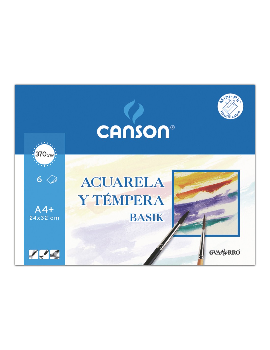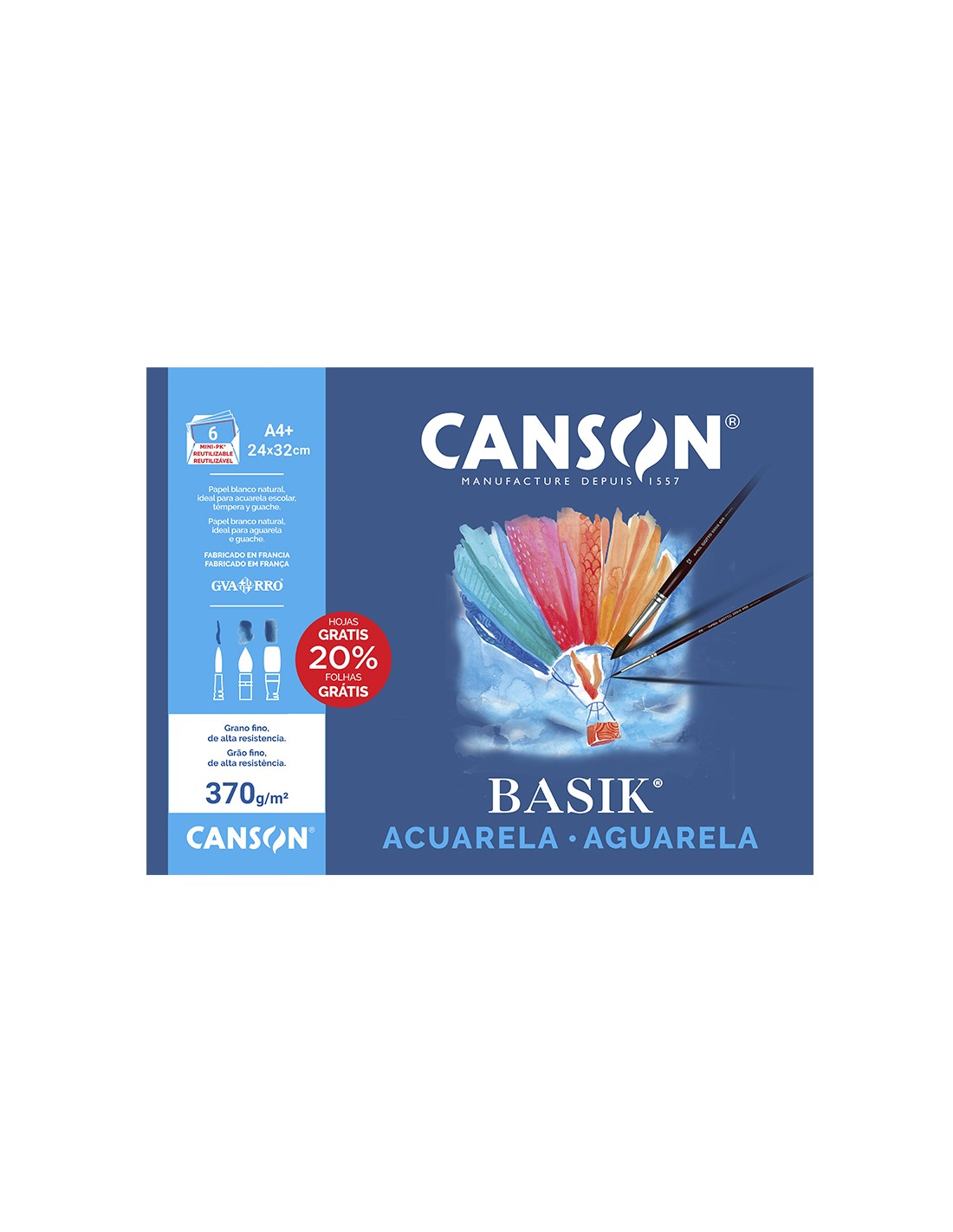Papel acuarela basik canson din a4+ 370 gr pack de 6 hojas