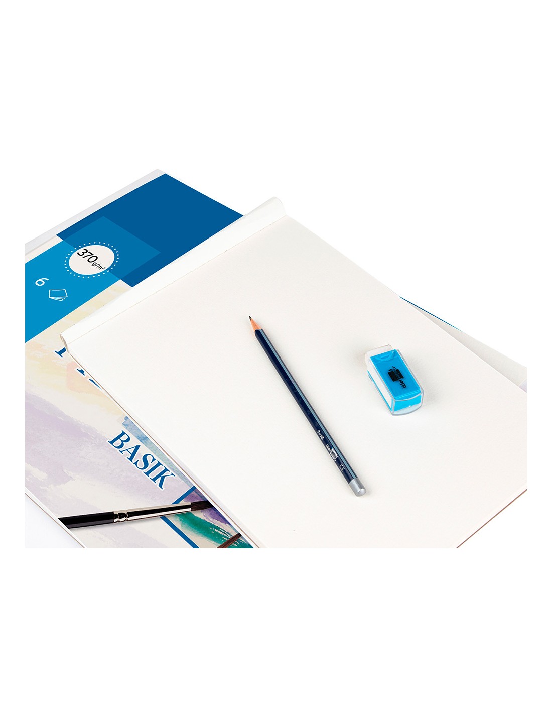 370 g/m². Papel de color blanco natural, ligeramente alisado y muy bien encolado. Ofrece dureza y regularidad en su superficie. Papel idóneo para acuarela escolar y témpera ya que permite una adecuada superposición y fijación de los colores y no desprende pelusilla por el uso del pincel. El minipack de 6 hojas.