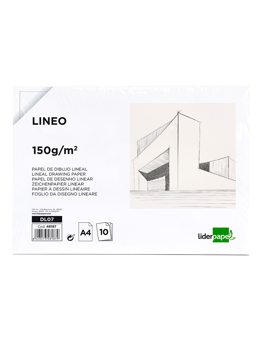 Papel dibujo liderpapel 210x297mm 150g/m2 sin recuadro pack de 10 hojas