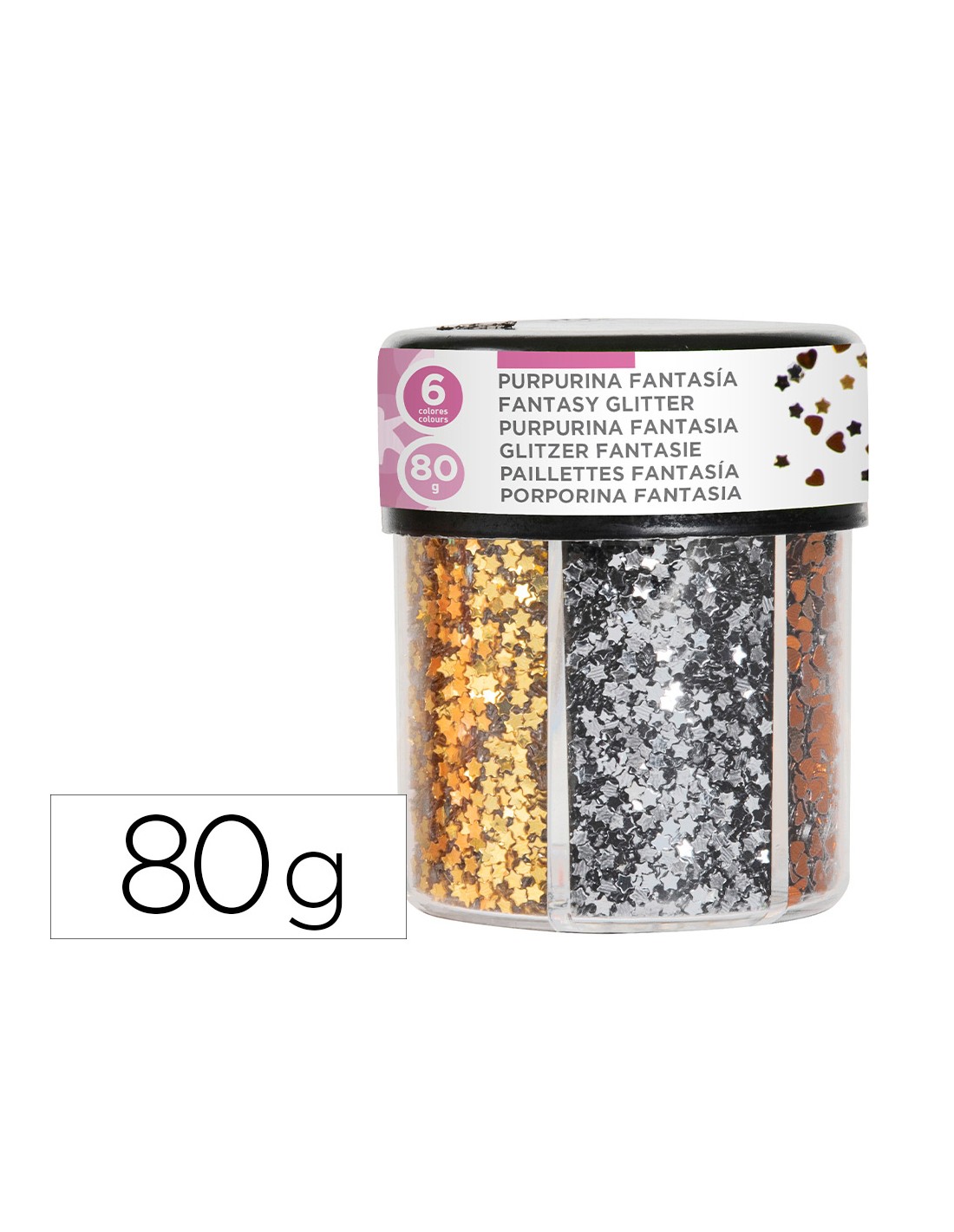 LIDERPAPELPurpurina fantasia liderpapel corazon y estrella color oro y plata bote de 80gr