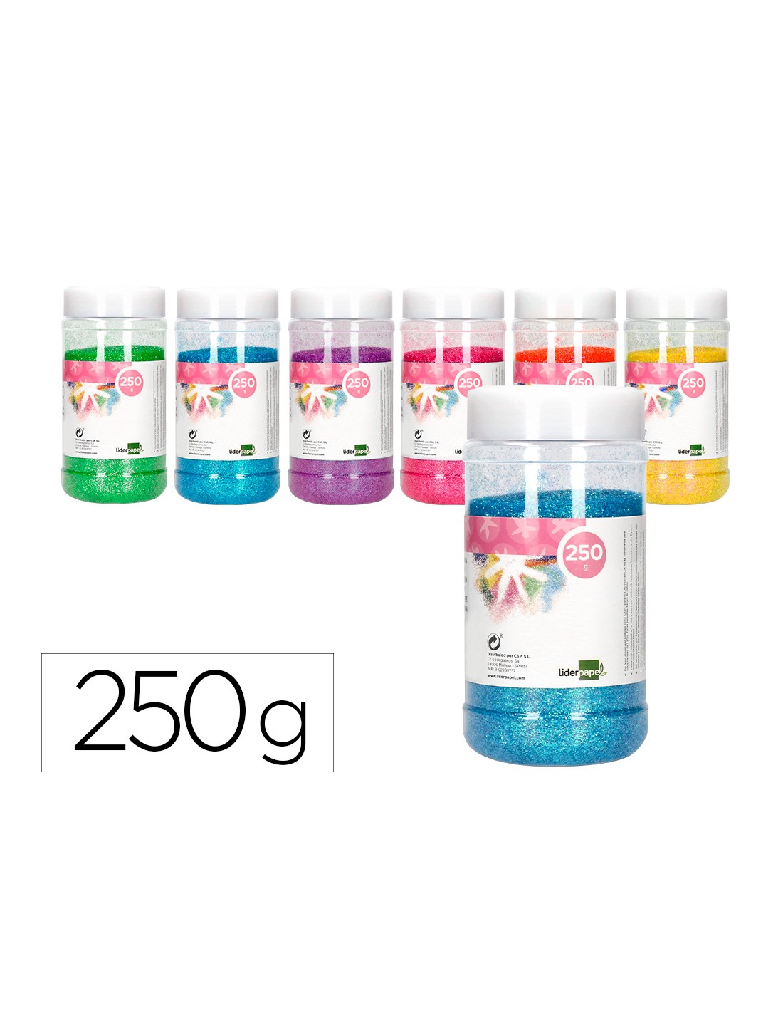LIDERPAPELPurpurina liderpapel fantasia colores metalicos pasteles surtidos bote de 250 gr