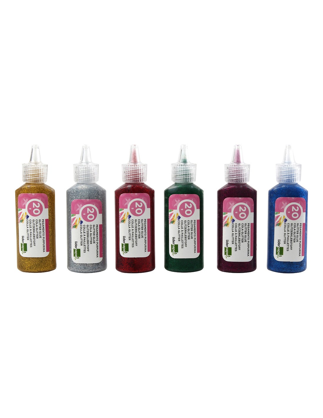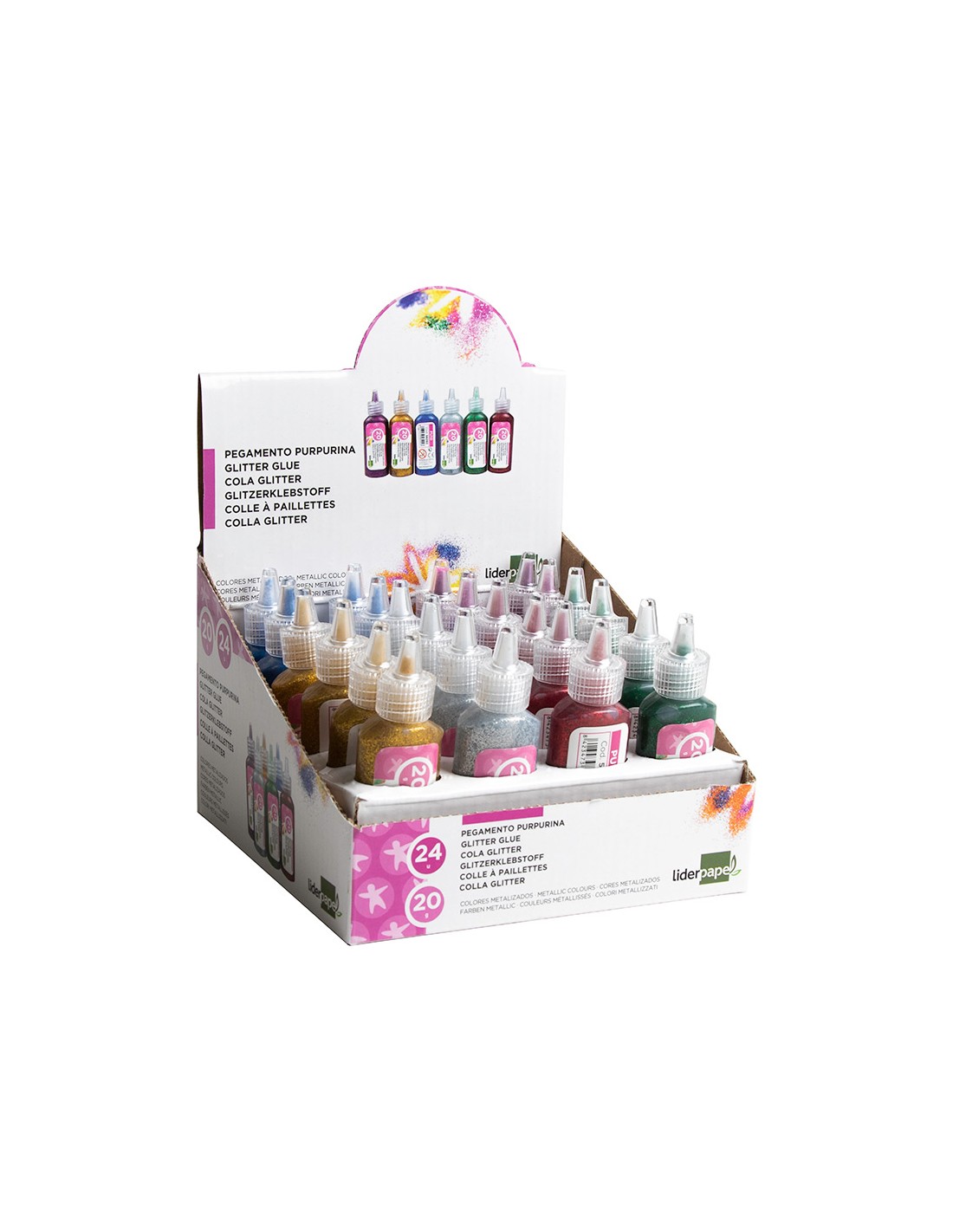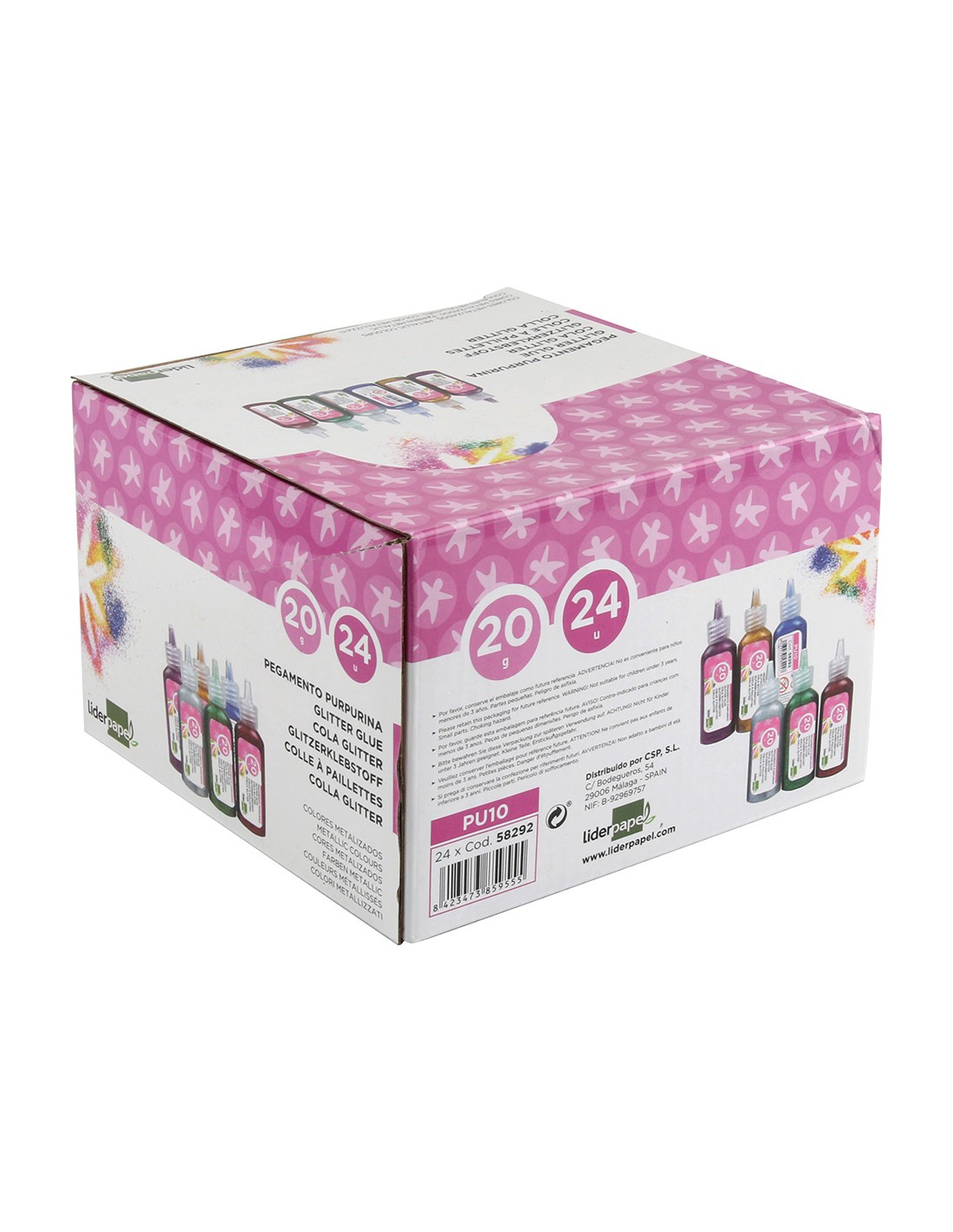 LIDERPAPELPurpurina pegamento liderpapel fantasia colores metalicos surtidos bote 20 gr