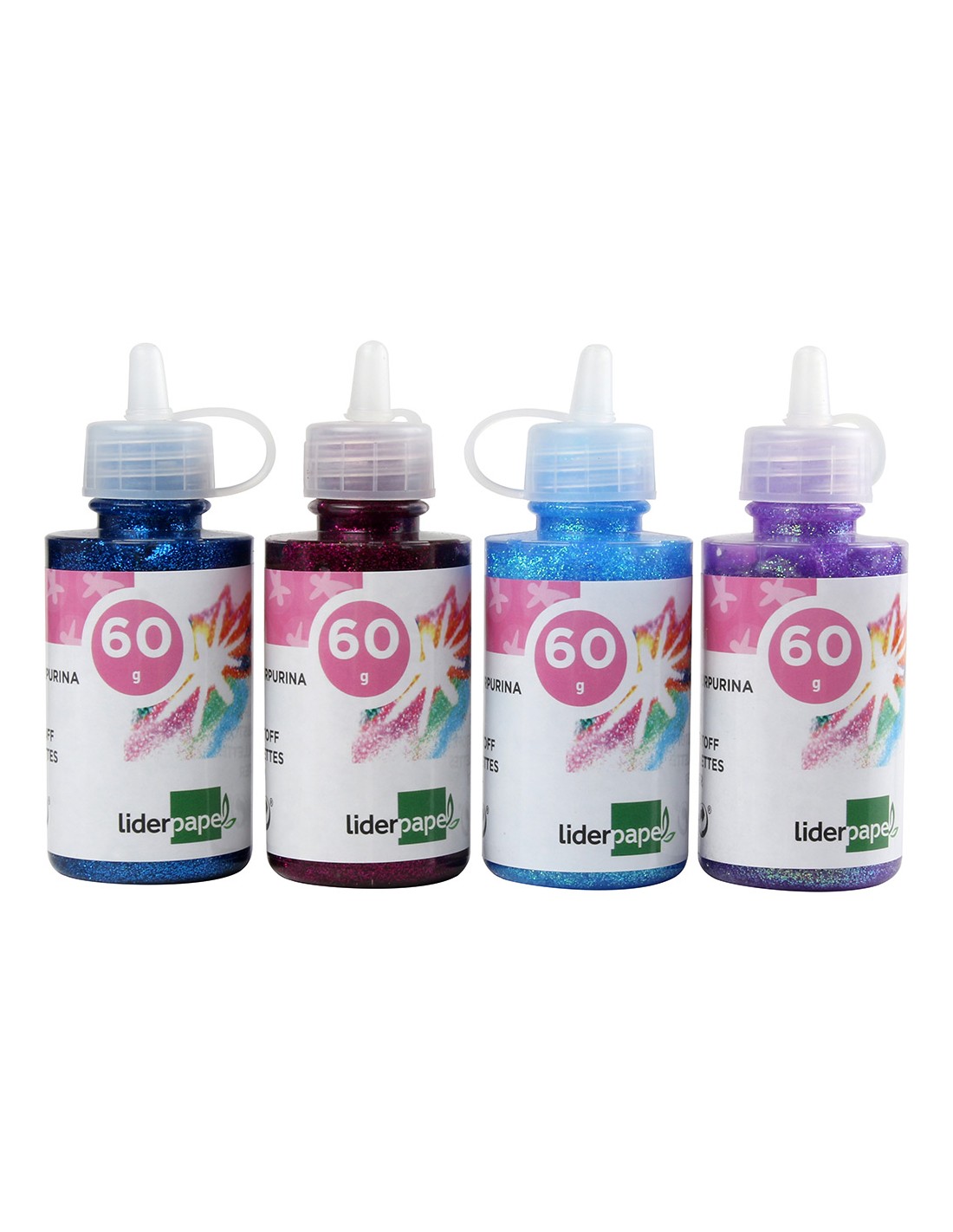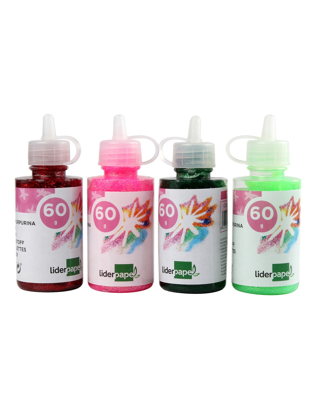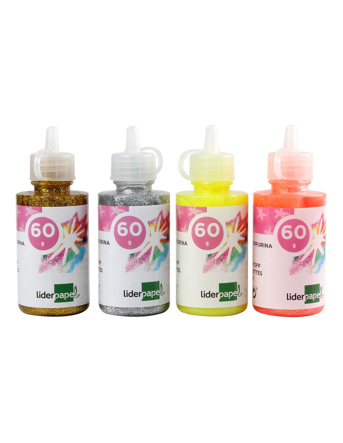 LIDERPAPELPurpurina pegamento liderpapel fantasia colores metalicos surtidos bote de 60 gr