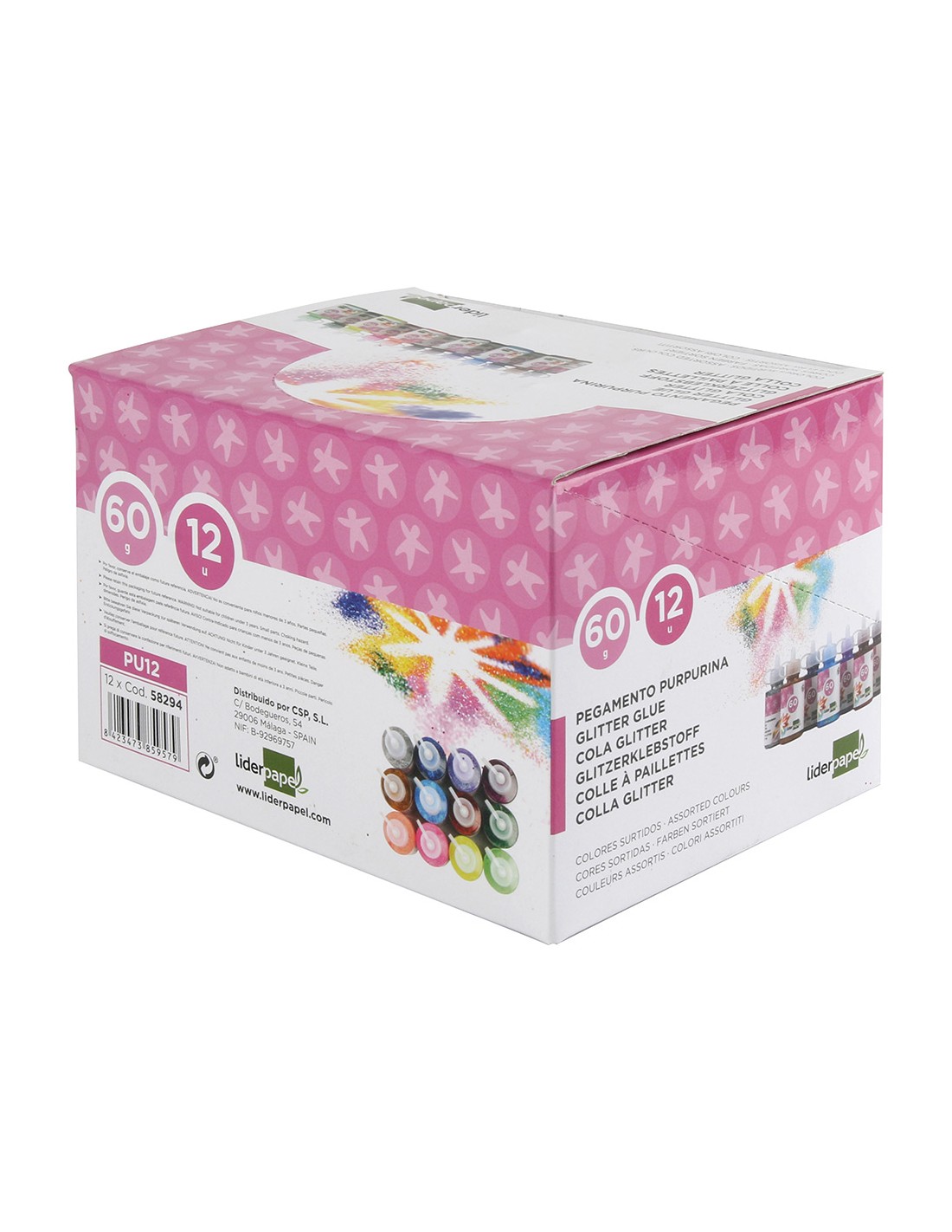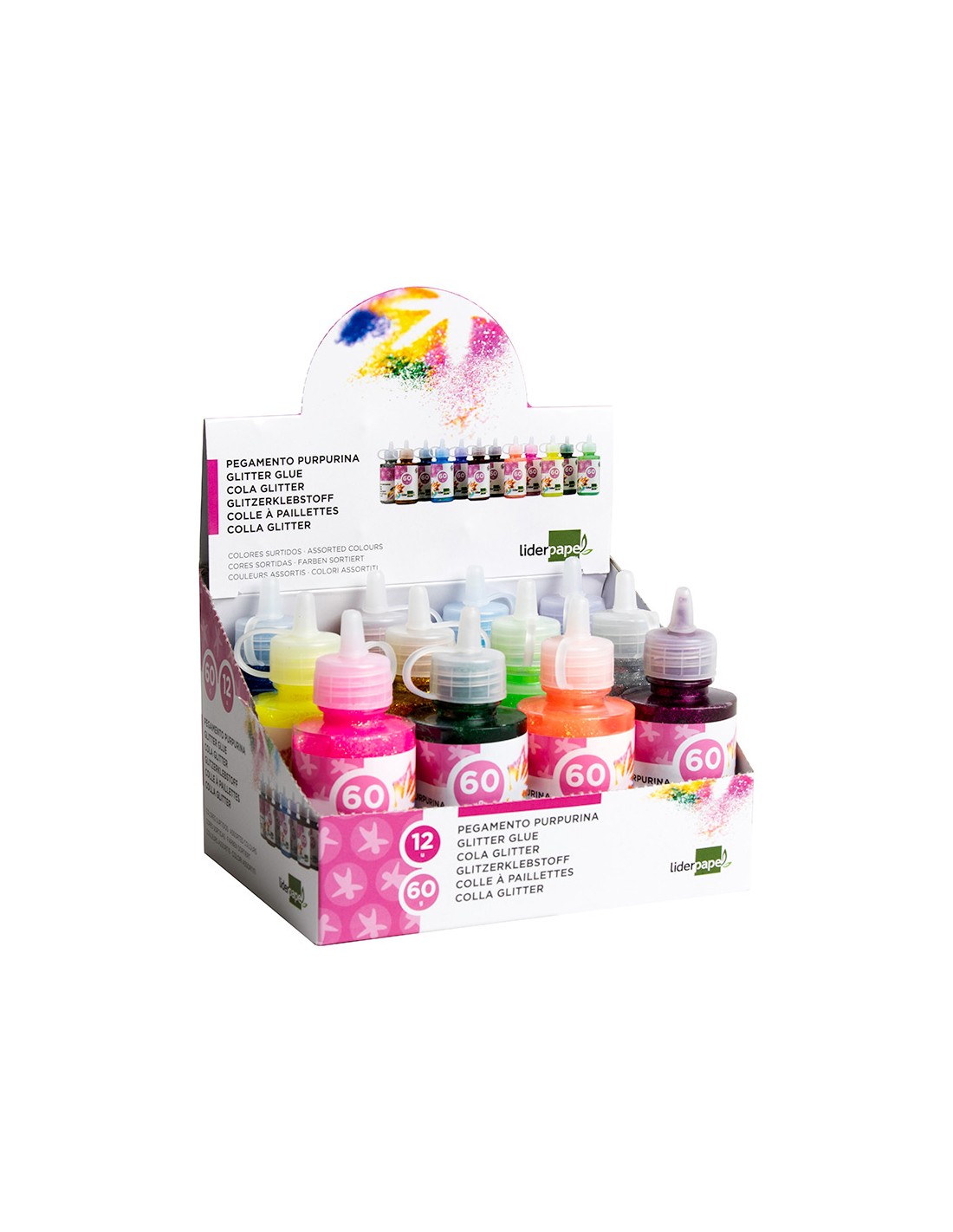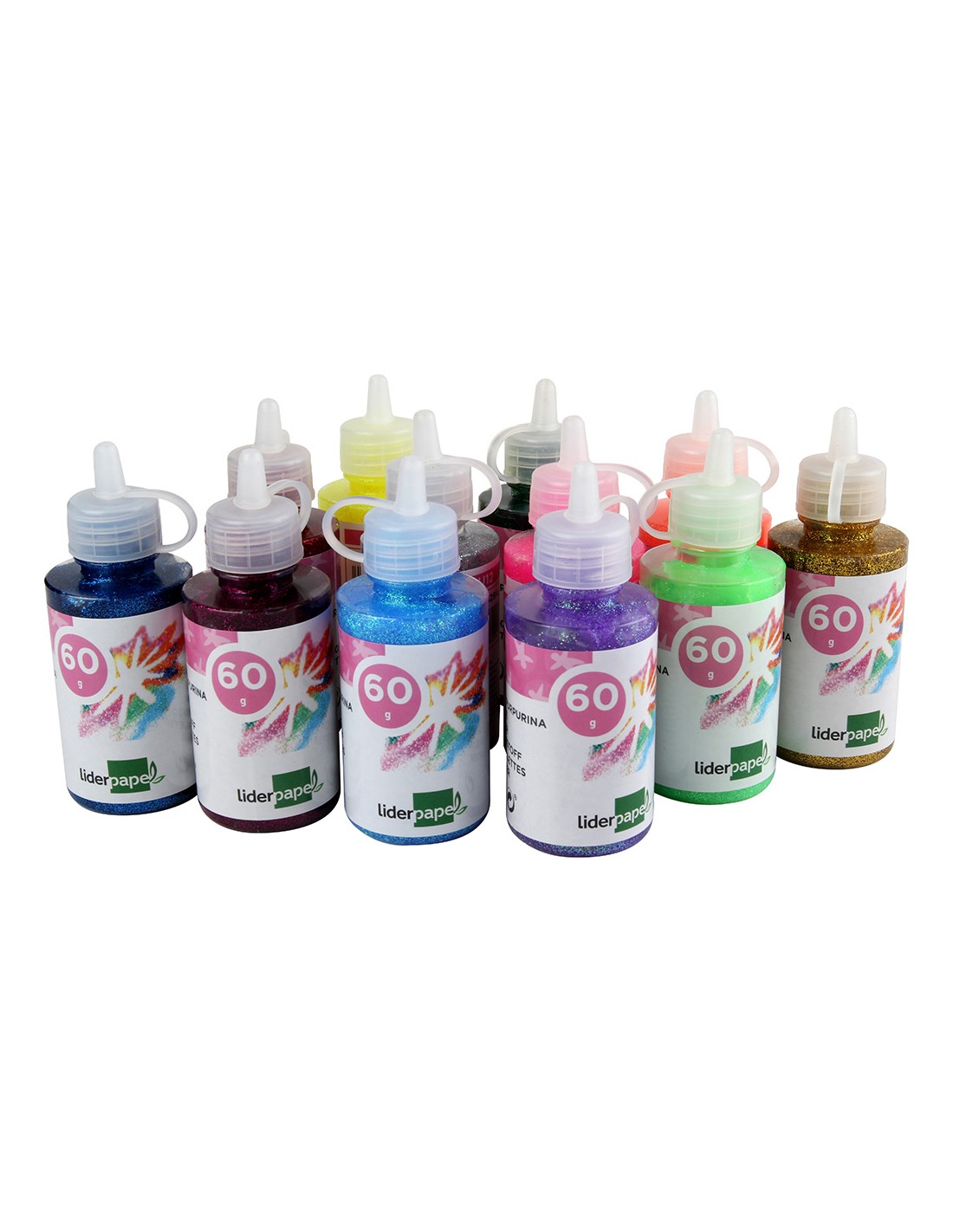 LIDERPAPELPurpurina pegamento liderpapel fantasia colores metalicos surtidos bote de 60 gr