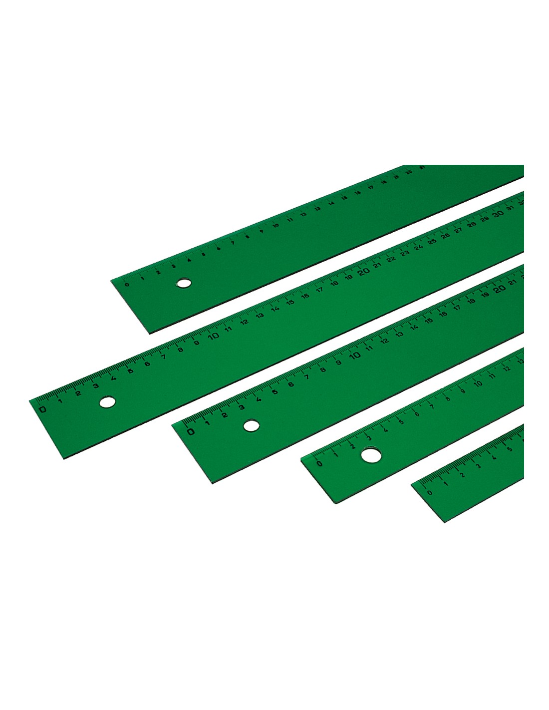 Regla de gran calidad para estudios y oficinas. De plástico verde transparente y graduaciones grabadas a prueba de emborronamiento.