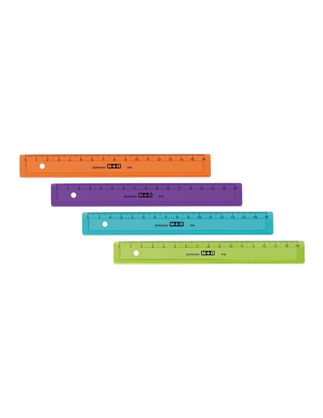 Regla m+r 16 cm plastico graduada y biselada colores surtidos