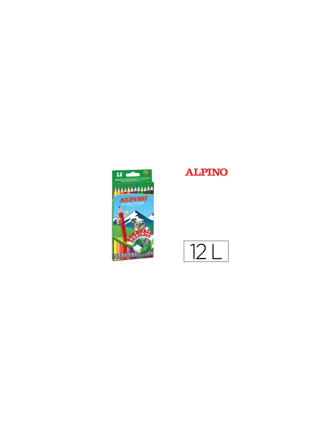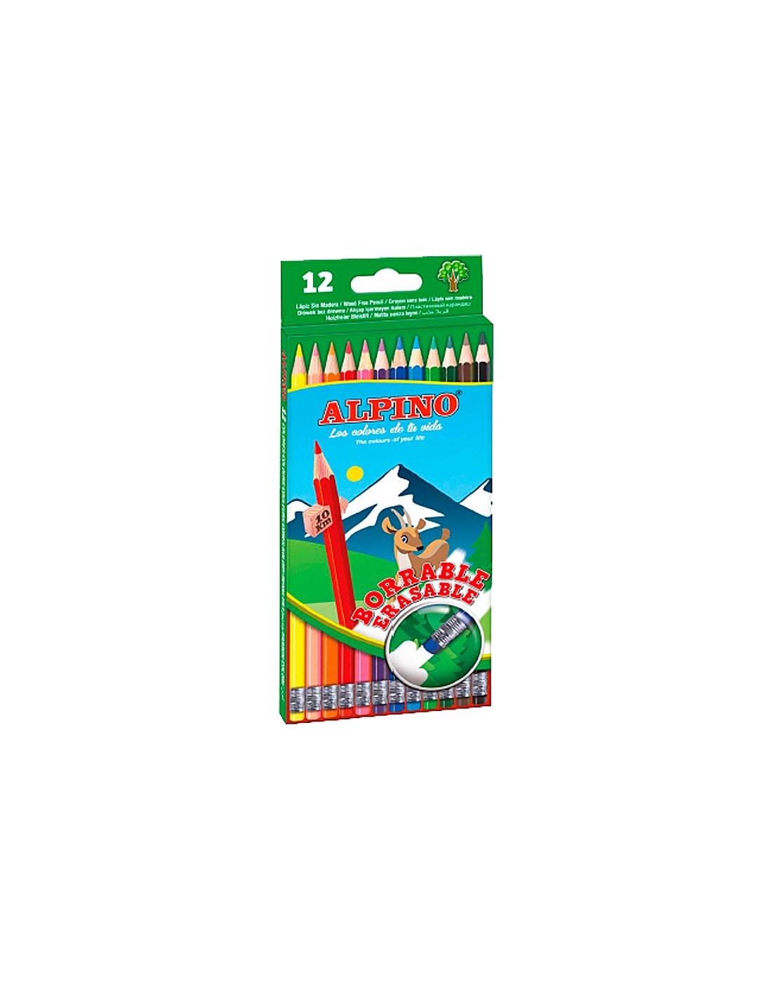 Lapices de colores alpino borrable con goma caja de 12 colores surtidos