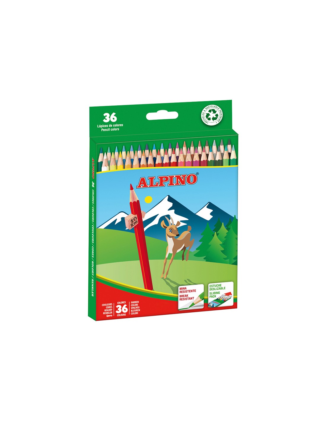 Lapices de colores alpino caja 36 unidades colores surtidos largos