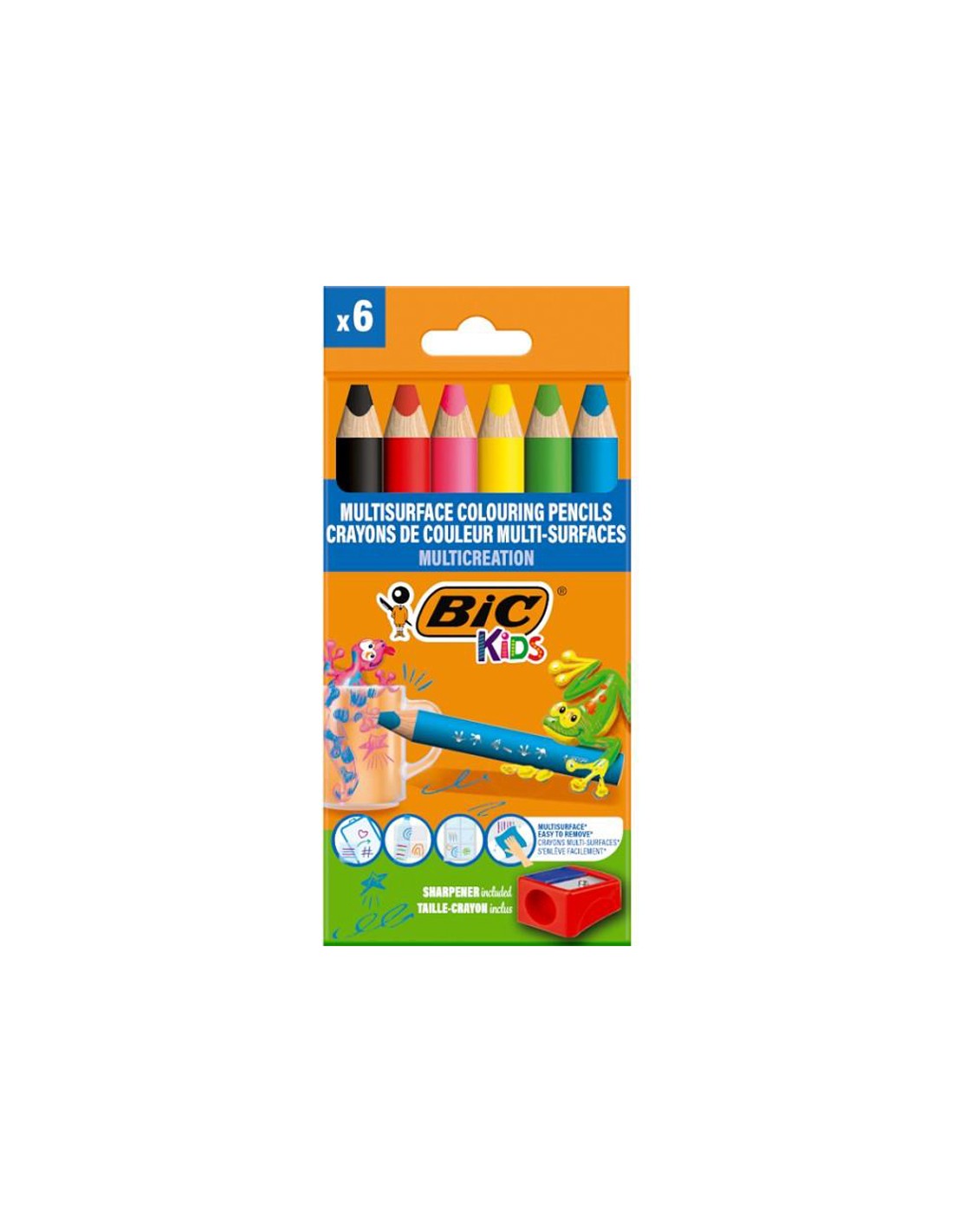 ¡Experimenta una creatividad sin límites con este pack de 6 lápices de colores multisuperficie Bic Kids! Explora estas técnicas con una amplia gama de colores vivos y escribe, dibuja y colorea sin esfuerzo sobre muchos tipos de superficies diferentes. El cuerpo triangular proporciona mayor agarre, y el sacapuntas incluido mantiene tus trazos definidos para que puedas seguir creando sin límites.
