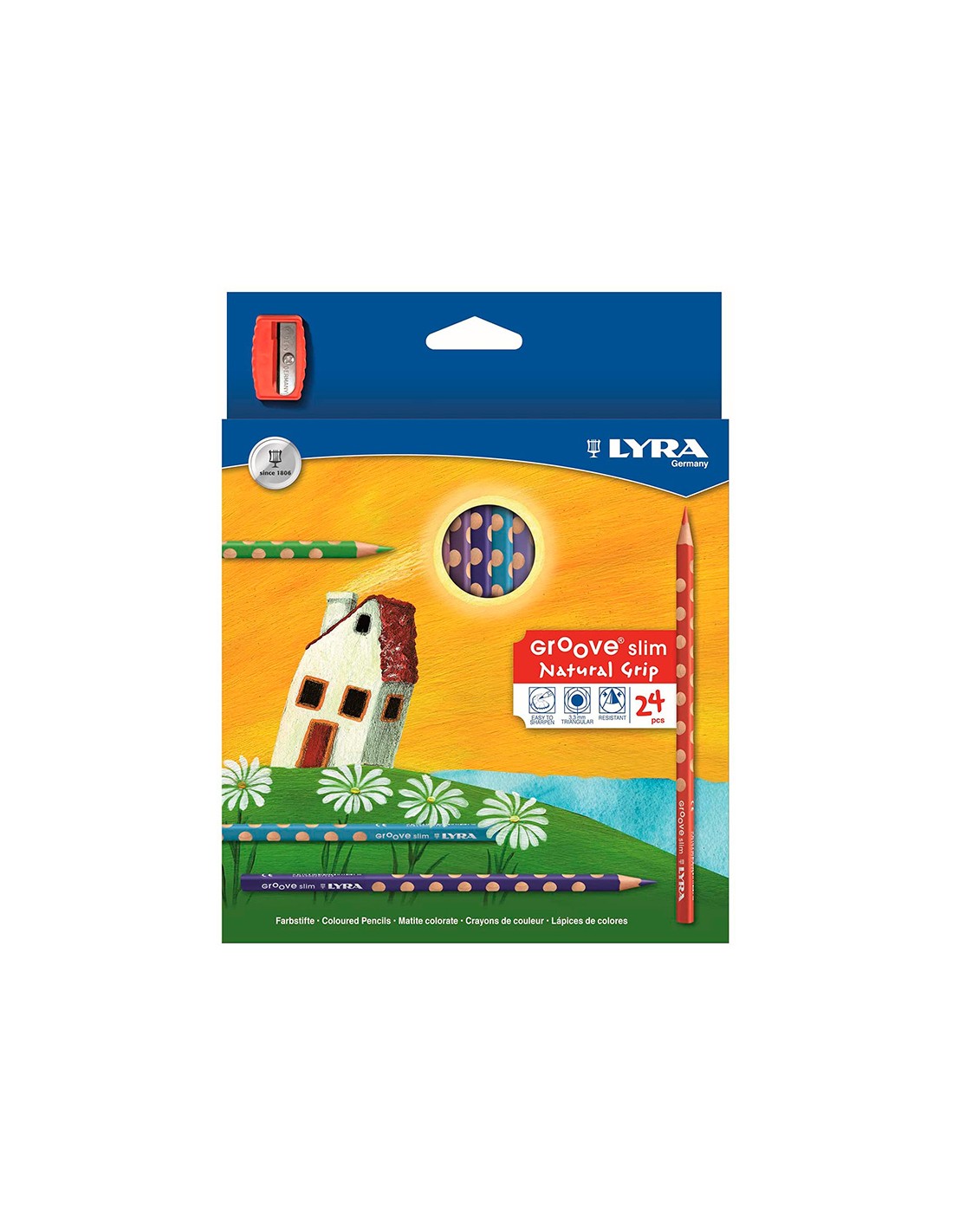 Lapices de colores lyra groove slim triangular minas de 3,3 mm caja de 24 colores + sacapuntas