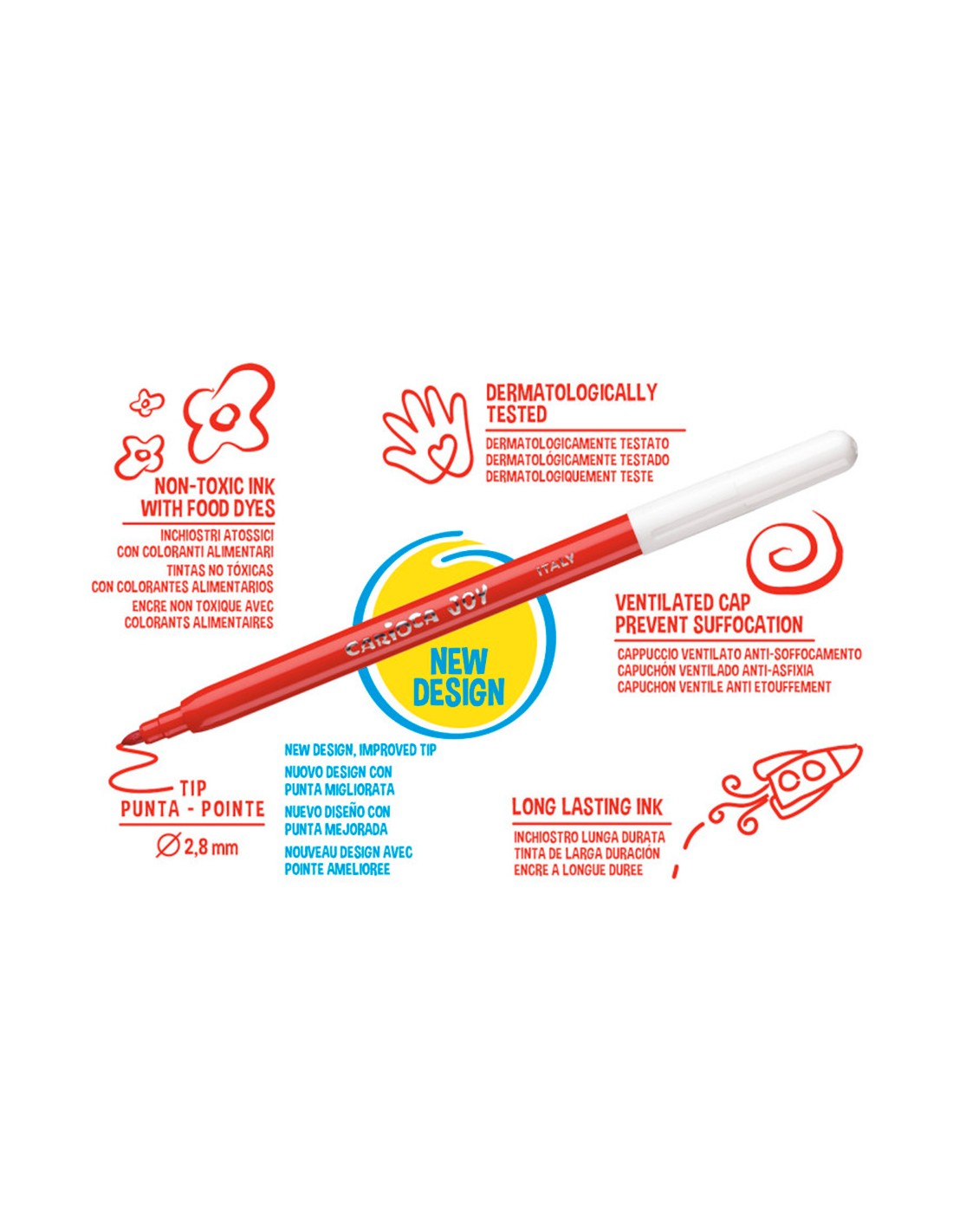 Punta de nylon de 2,6 mm de diámetro. Tinta a base de agua y colorantes alimentarios inocuos y lavables. Punta bloqueada. Permite hasta 800 m de escritura. Sin gluten.