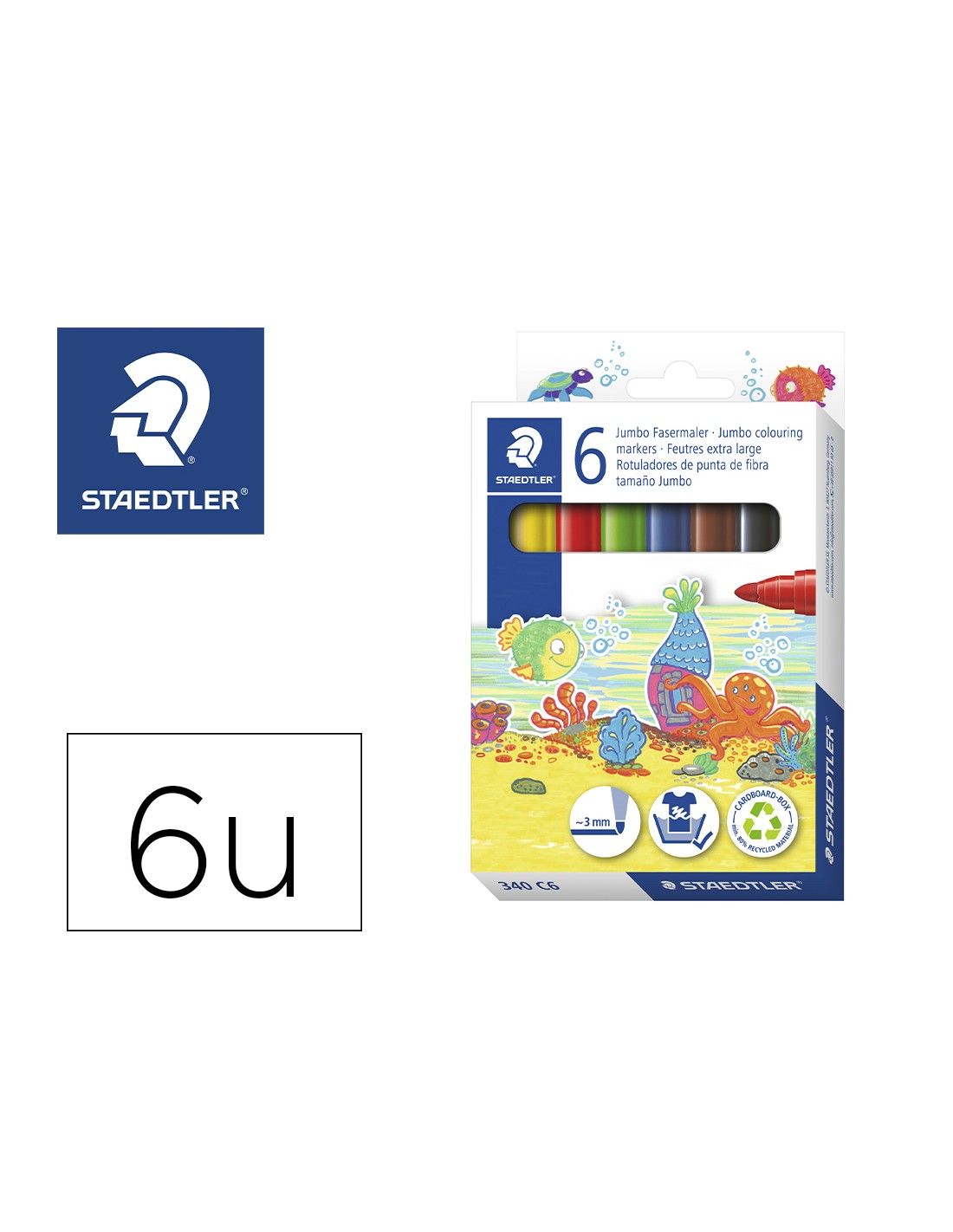 Rotulador staedtler color jumbo trazo 3 mm estuche de 6 unidades colores surtidos