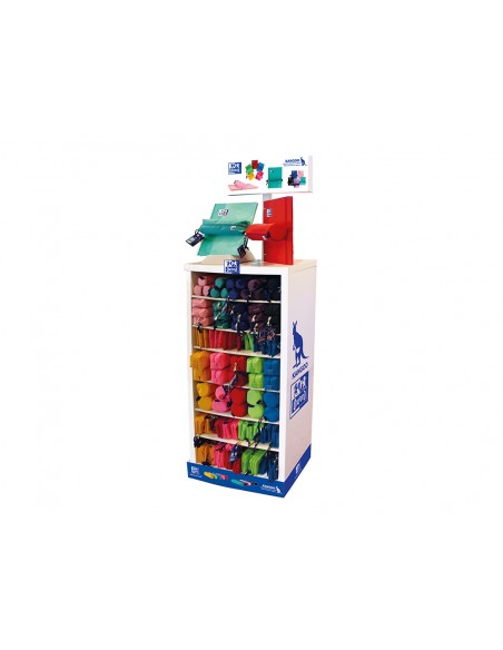 Bolso escolar portatodo oxford expositor de 105 unidades colores surtidos 1200x120x565 mm