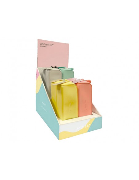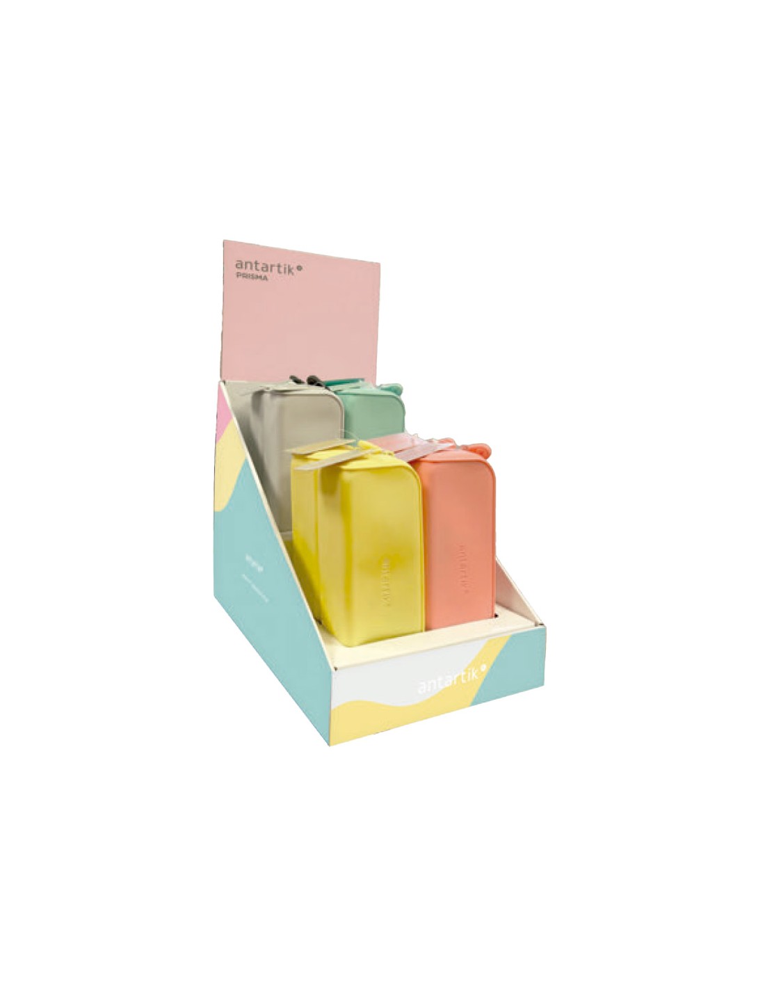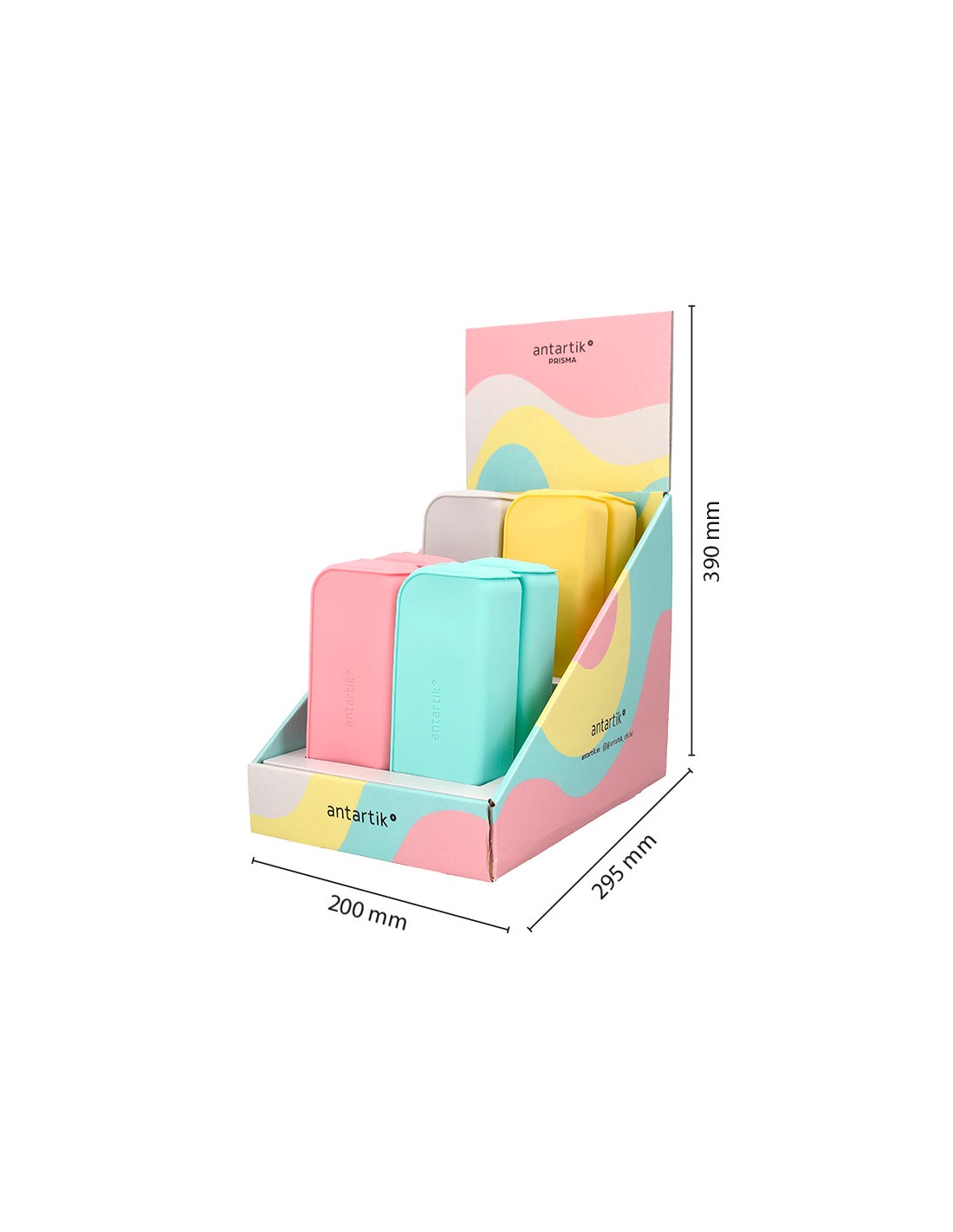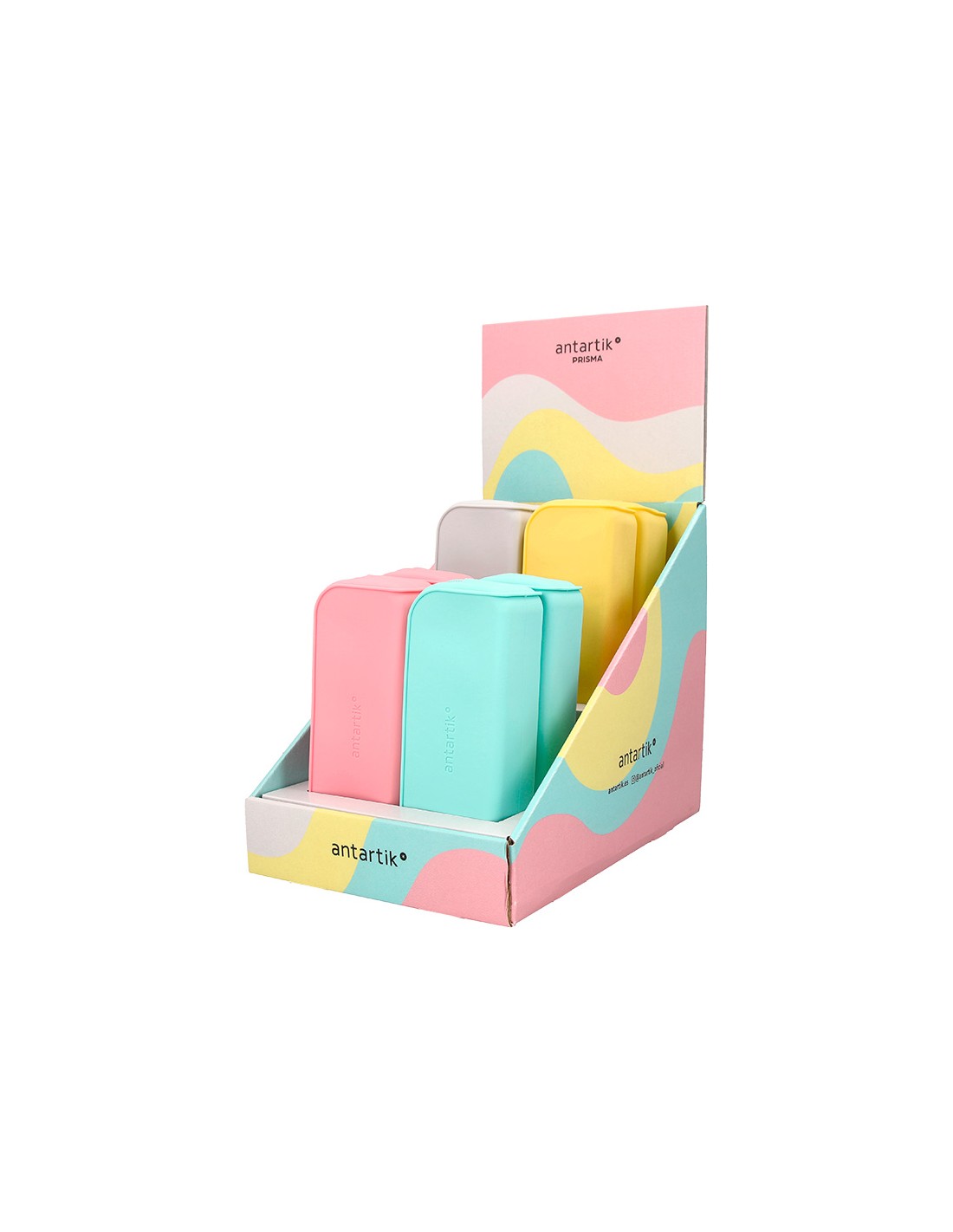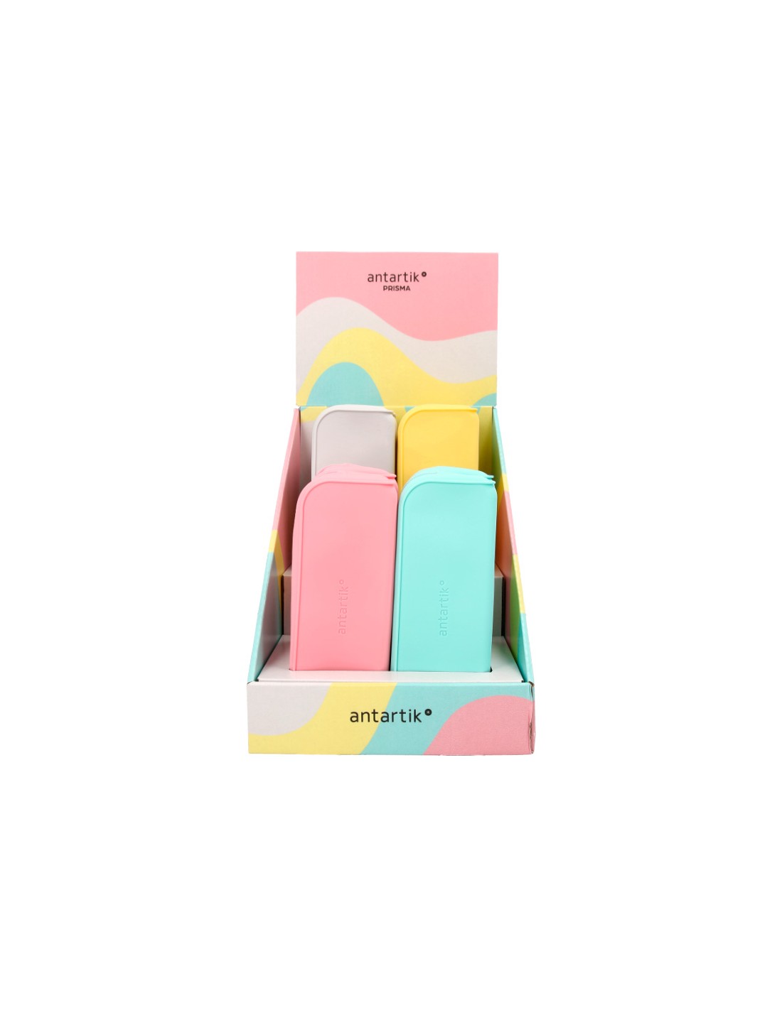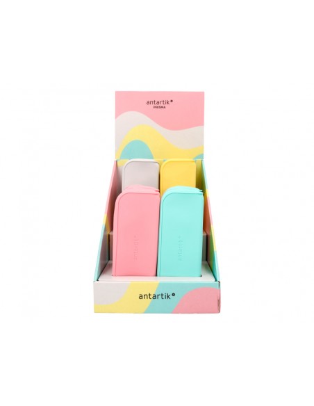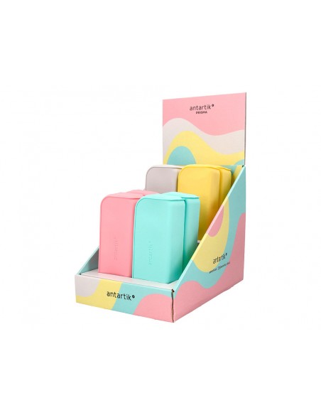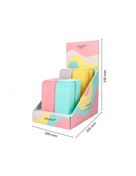 Estuche portatodo antartik prisma soft rectangular 185x50x75 mm expositor de 8 unidades colores pastel