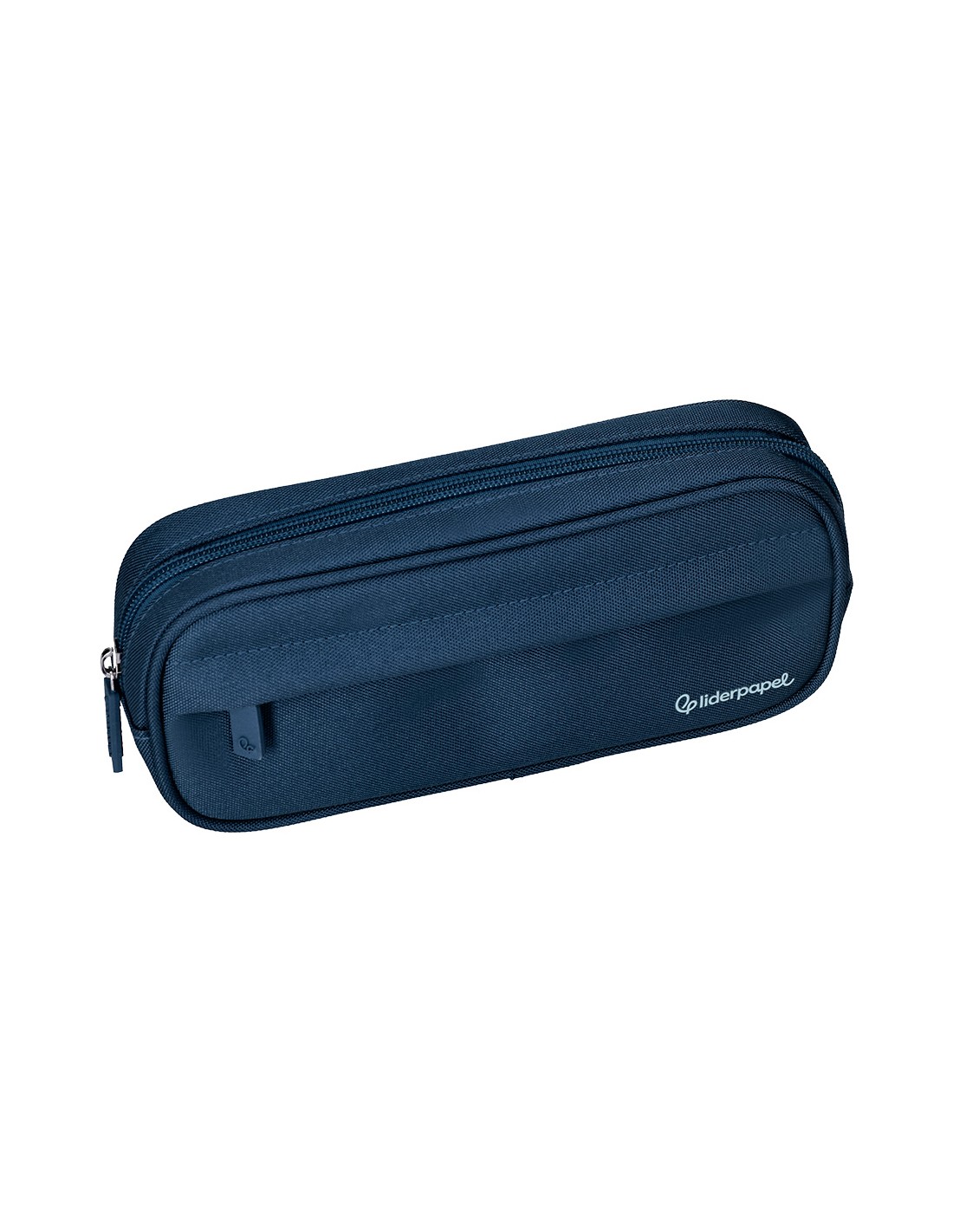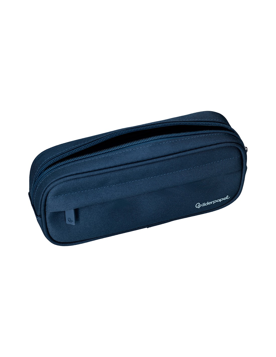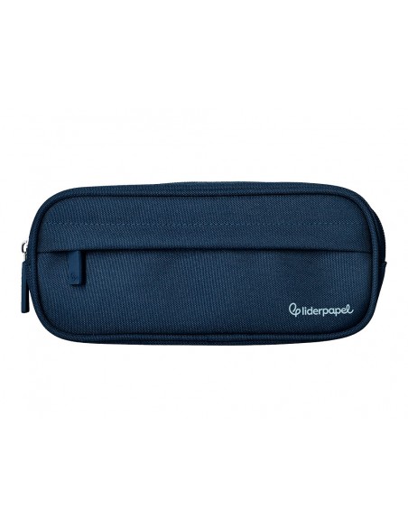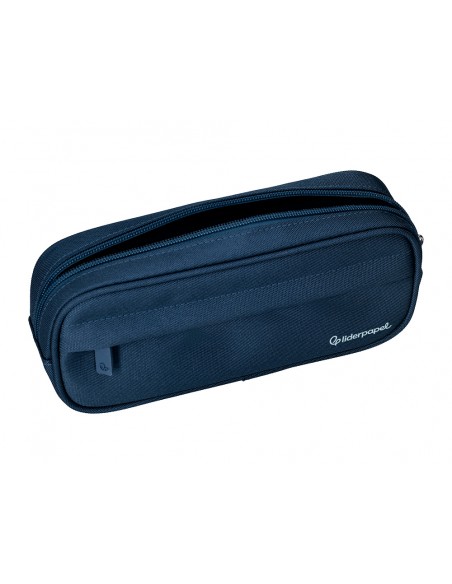 Estuche portatodo liderpapel classic ovalado 2 cremalleras con bolsillo delantero 210x90mm azul marino
