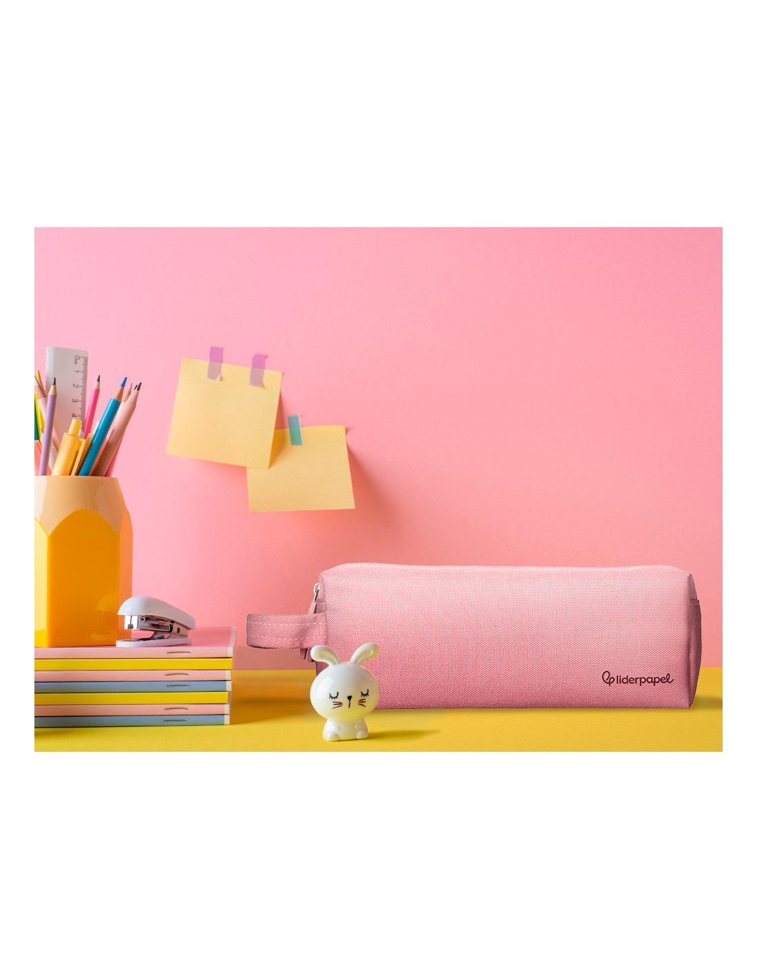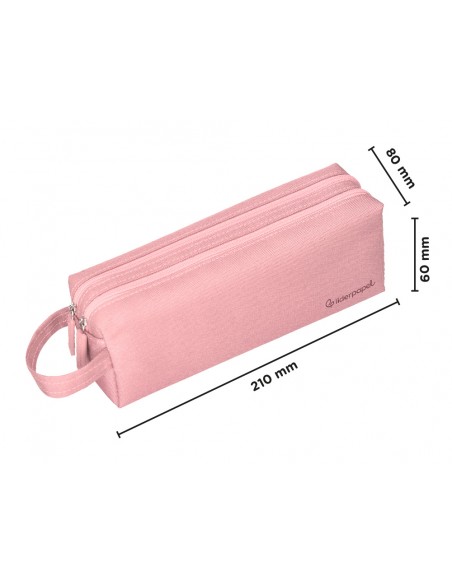 Estuche portatodo liderpapel classic rectangular con asa 2 cremalleras 210 x80mm rosa